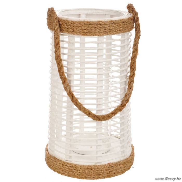 J-Line Lantaarn rond latjes hout wit h33