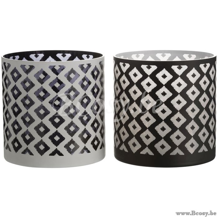 Jline Windlicht Ruit Glas Zwart Wit Large Assortiment Van 2