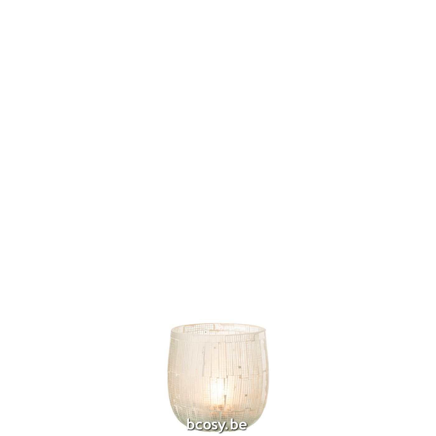 Jline Windlicht Mozaiek Glas Licht Grijs Medium