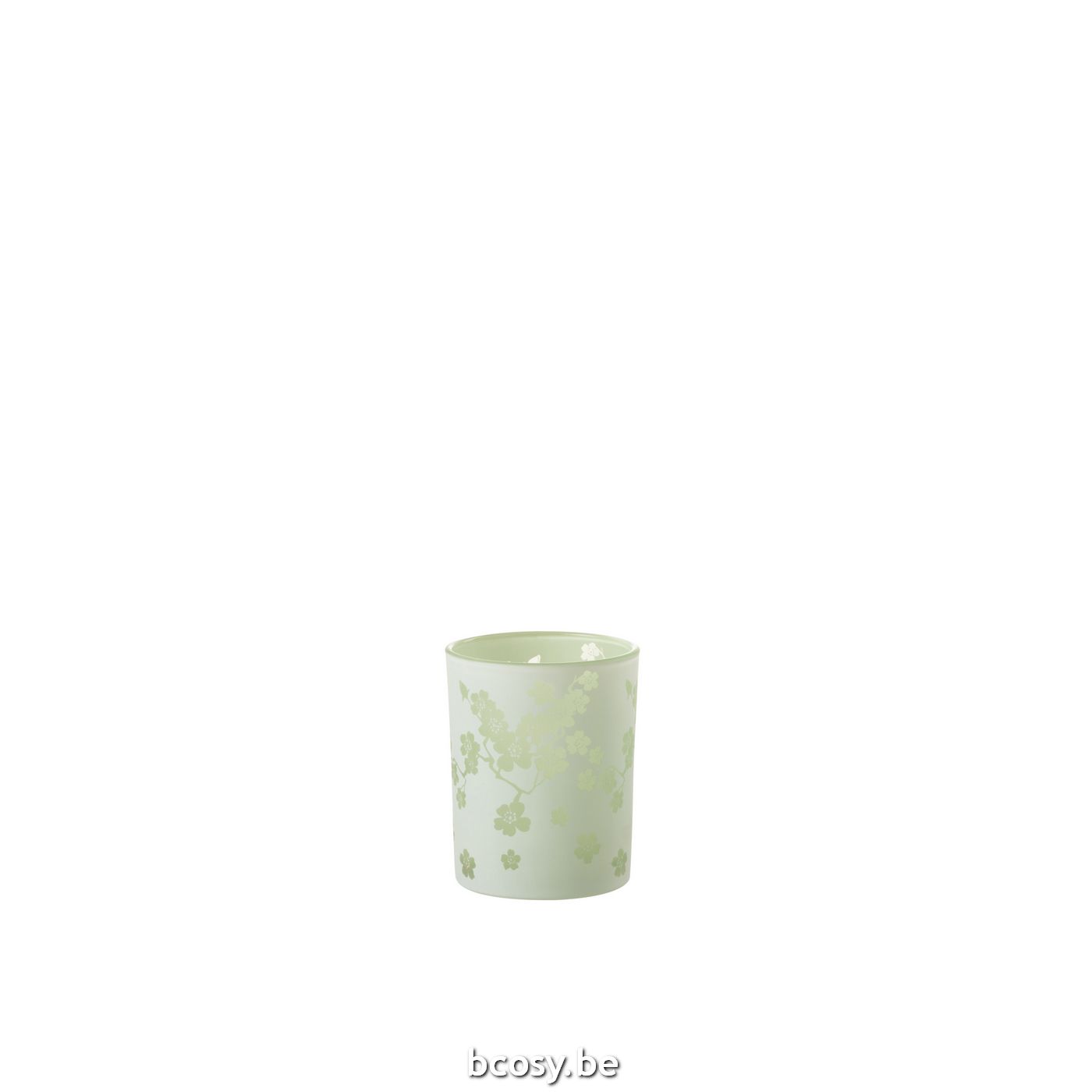 J-Line by Jolipa Photophore Fleurs Verre Vert Medium