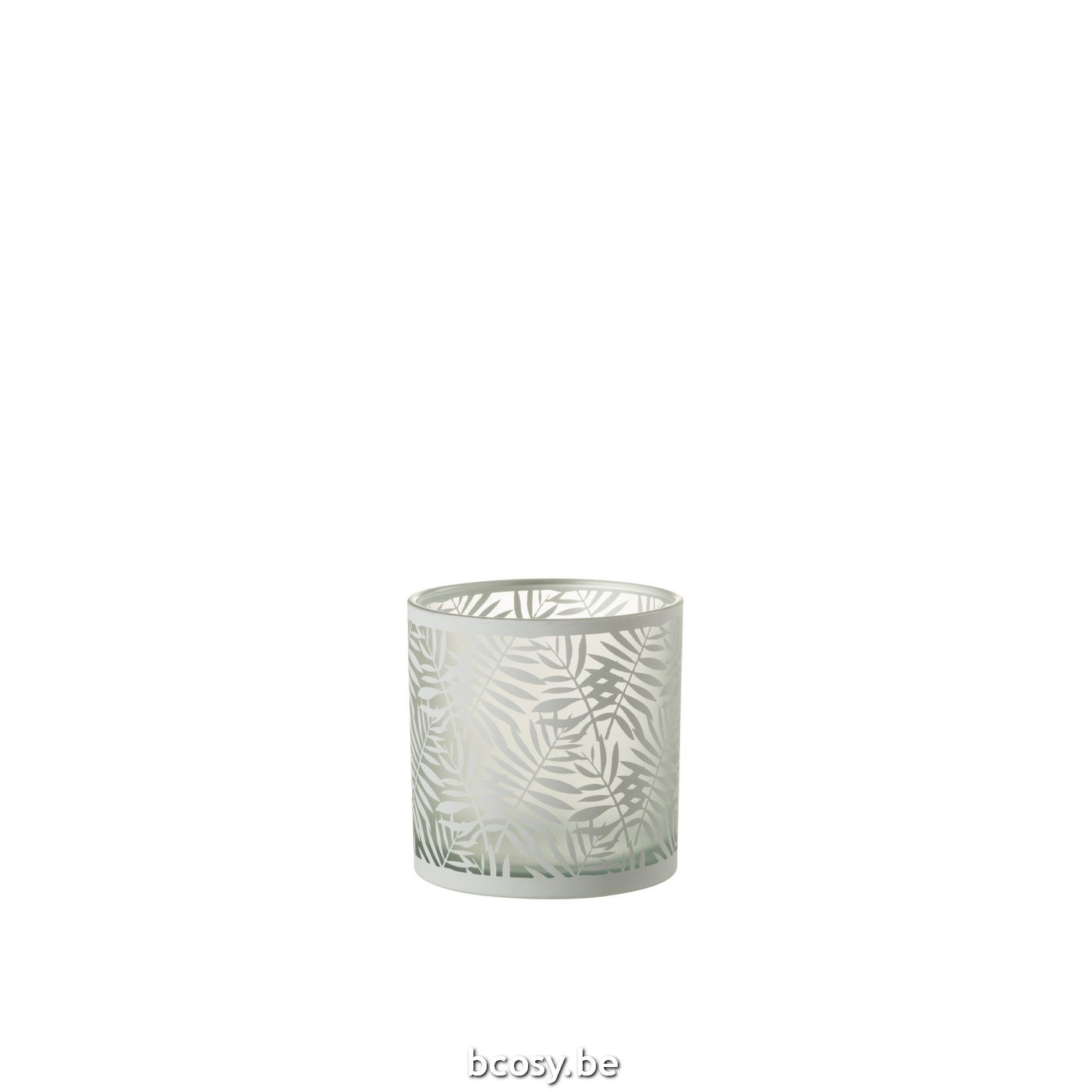J-Line by Jolipa Photophore Feuilles Verre Blanc Large