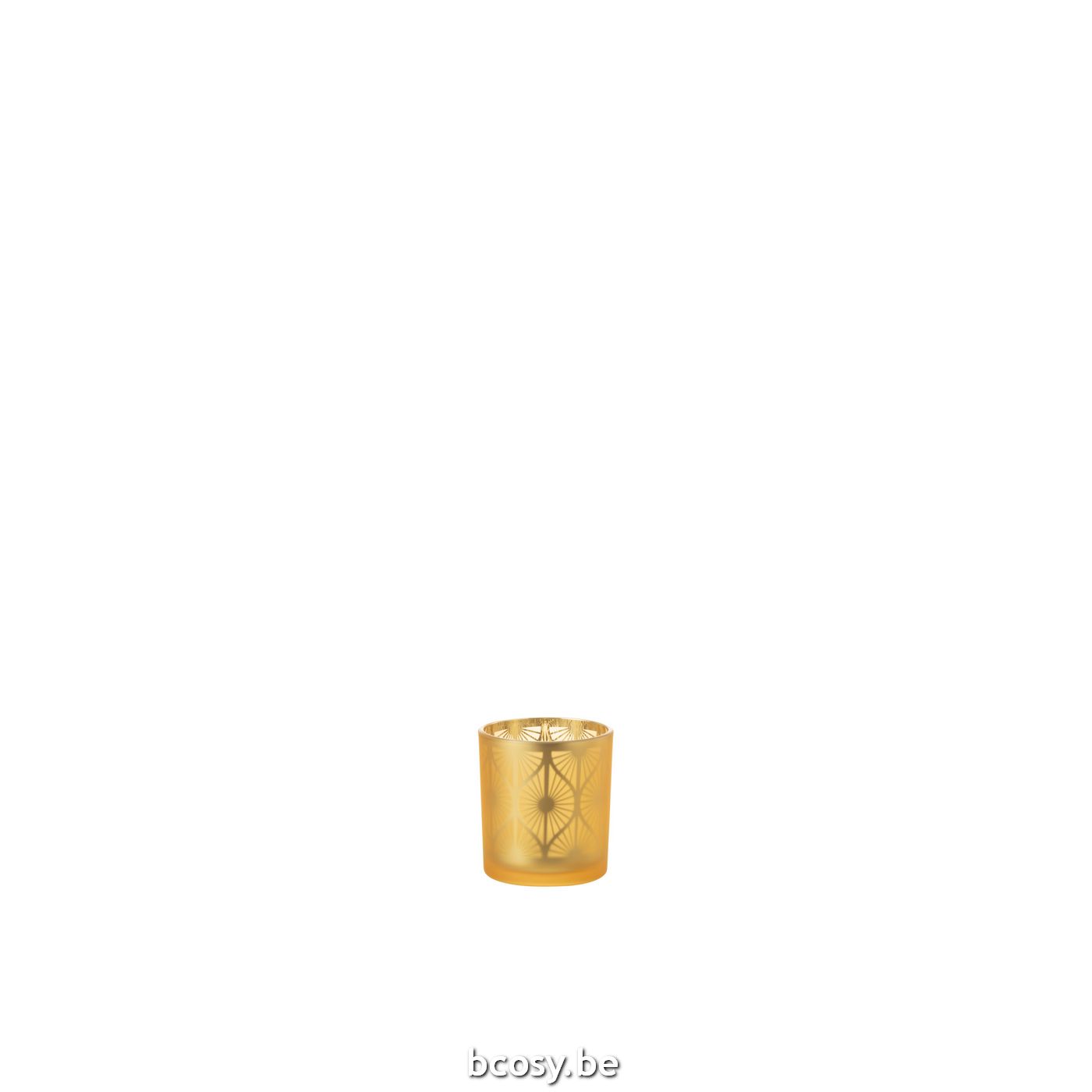 Jline Theelichthouder Ruit Bloemen Glas Geel Small
