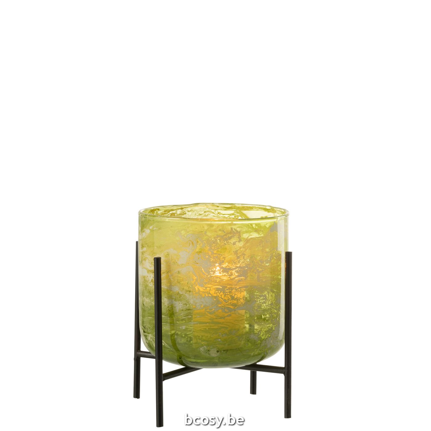 Jline Windlicht Staand Glas Ijzer Marmer Groen Medium