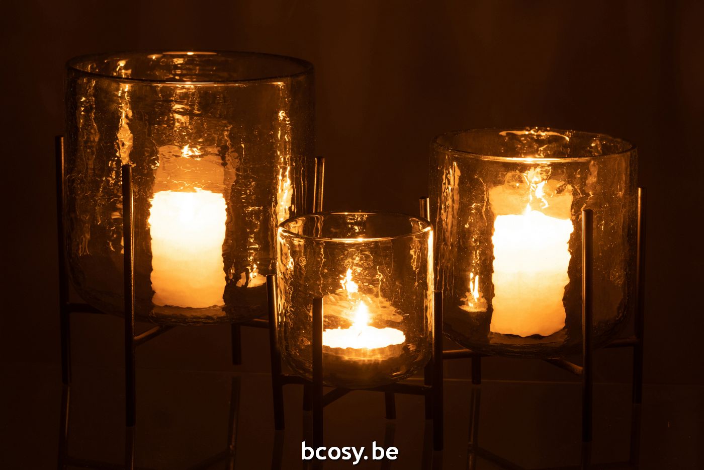 Jline Windlicht Staand Glas Ijzer Transparant Large