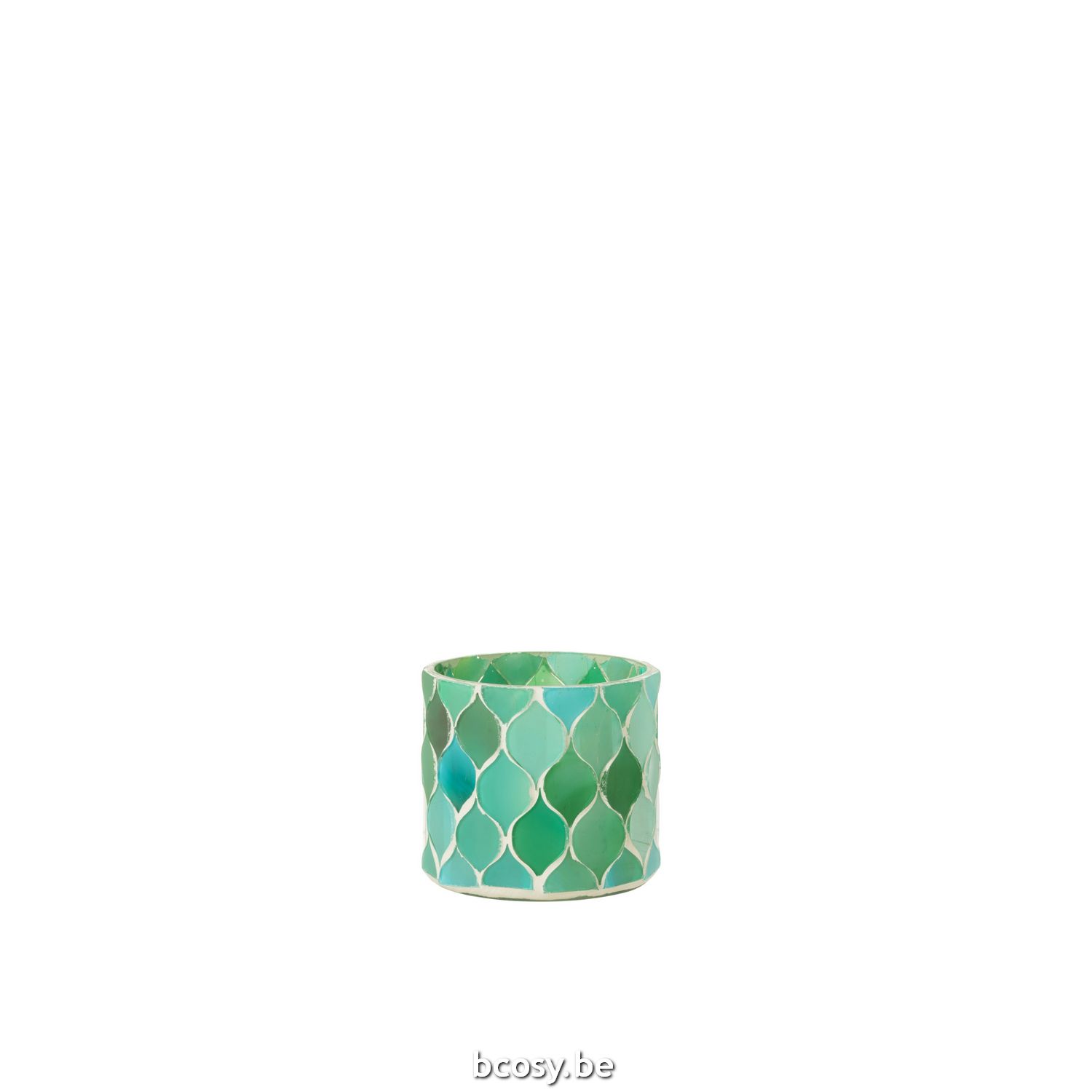 Jline Teelicht Houder Mozaiek Diamant Glas Blauw Groen Small