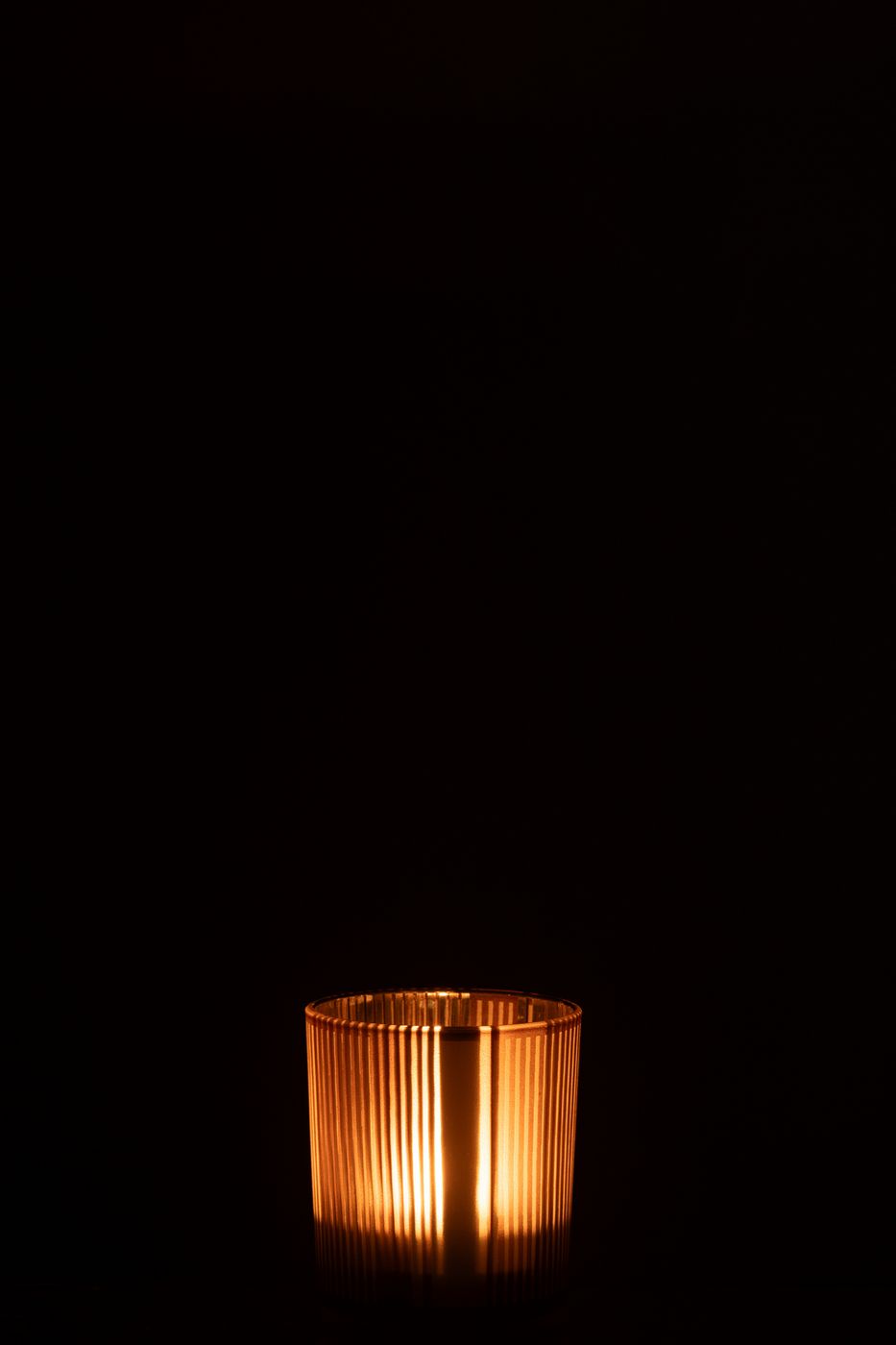 J-Line by Jolipa Photophore Lignes Verre Mat Marron/Blanc Small