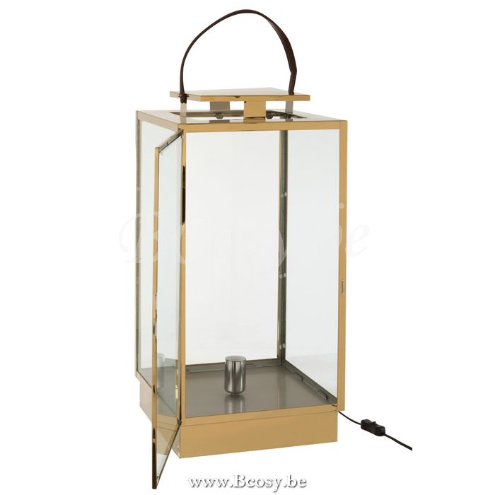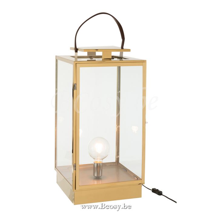 J-Line Lantaarn Lamp Metaal-Glas Goud 60H