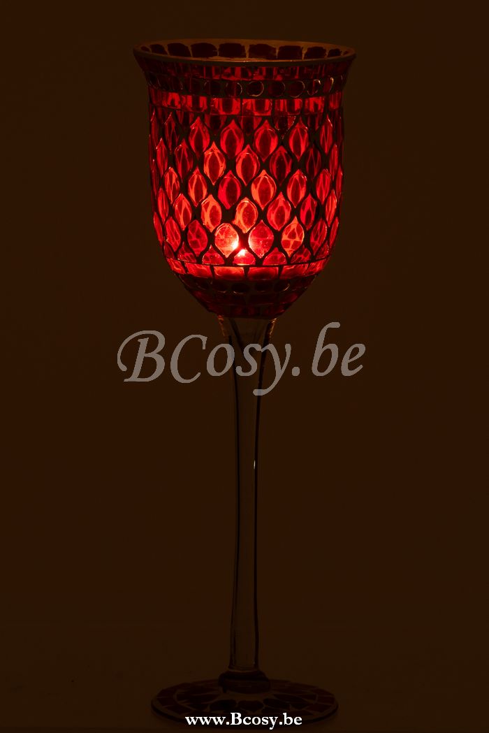 J-Line by Jolipa Photophore + Pied Mosaiques Verre Rouge/Blanc Large