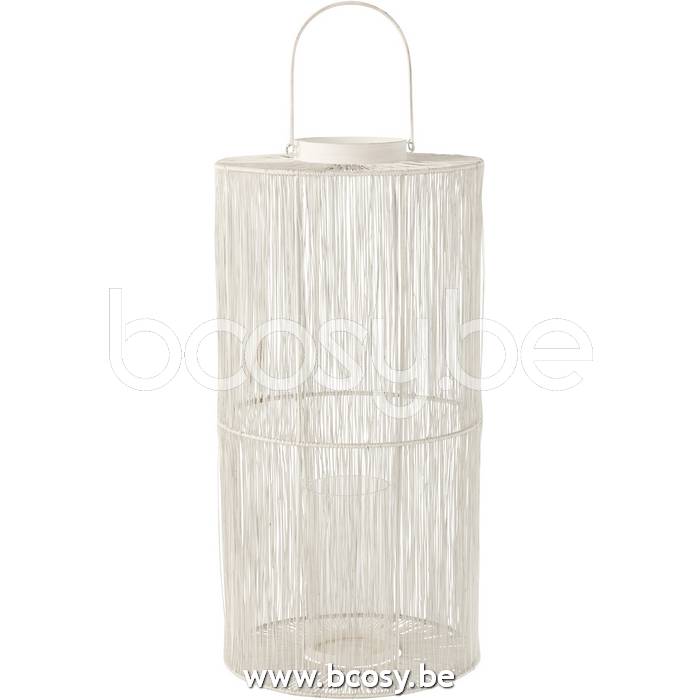 J-Line Lantaarn Metaal Mat Wiit Large L30xB30xH60 cm