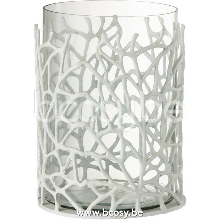 J-Line Windlicht Zee Metaal Wit L25xB25xH32 cm