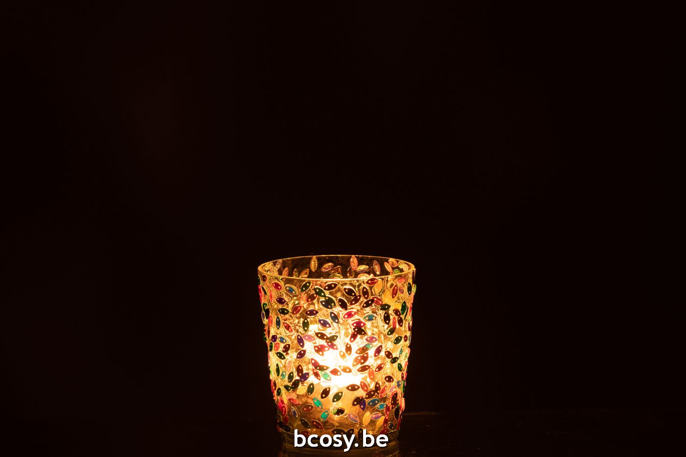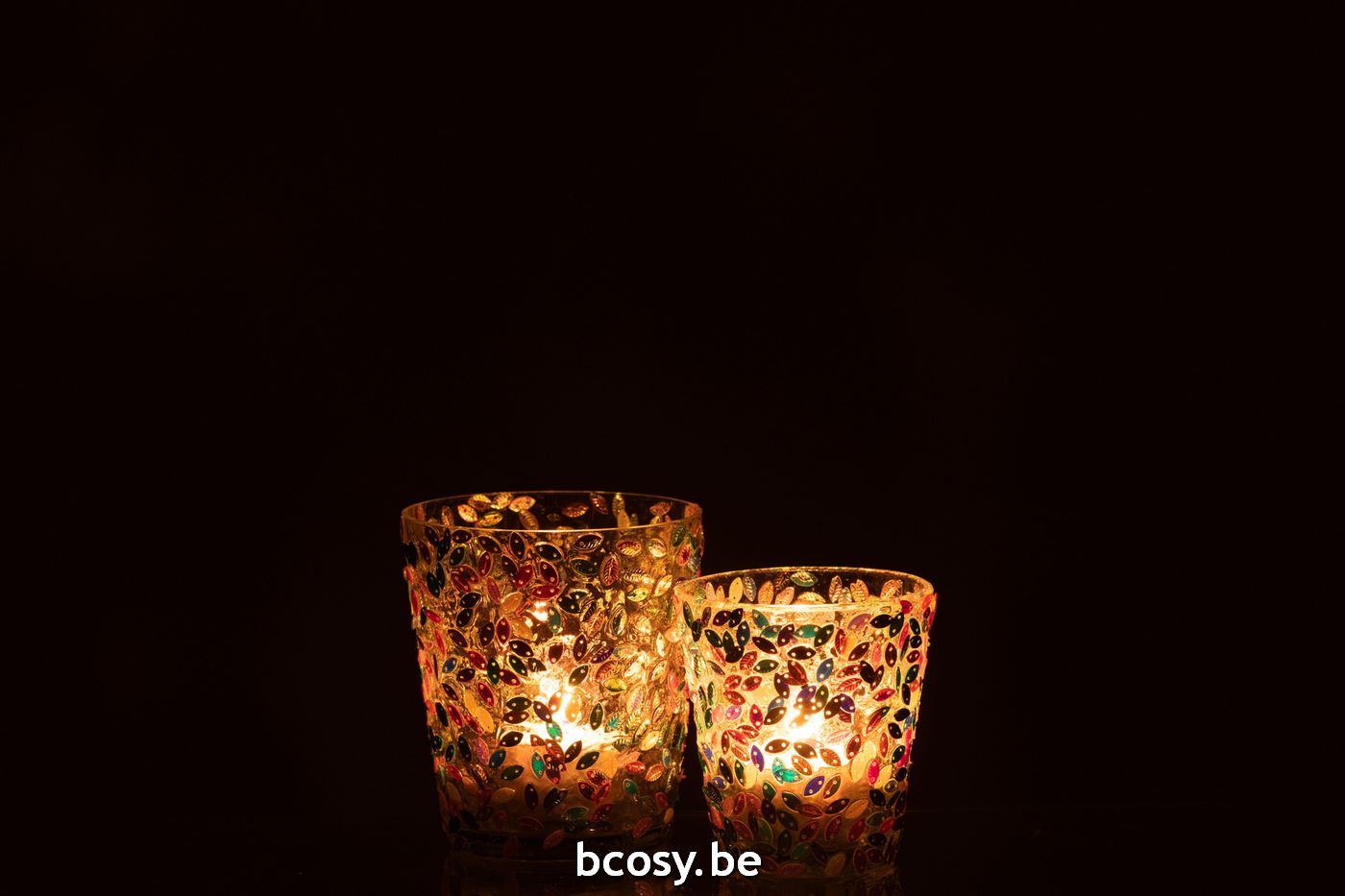 Jline Windlicht Blad Mozaiek Glas Pastel Large
