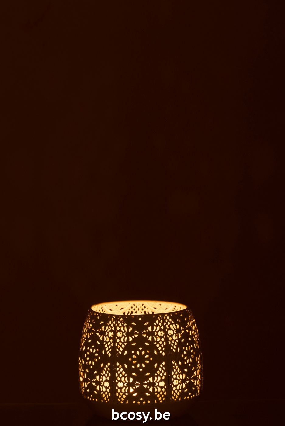 Jline Theelichthouder Rond Oosters Metaal Glas Wit Medium