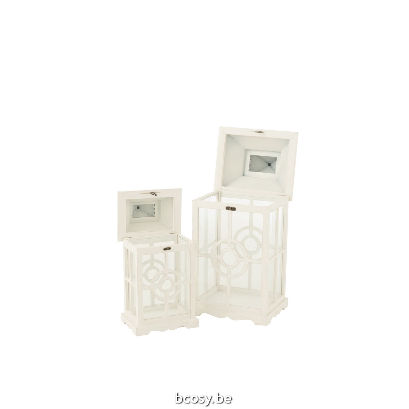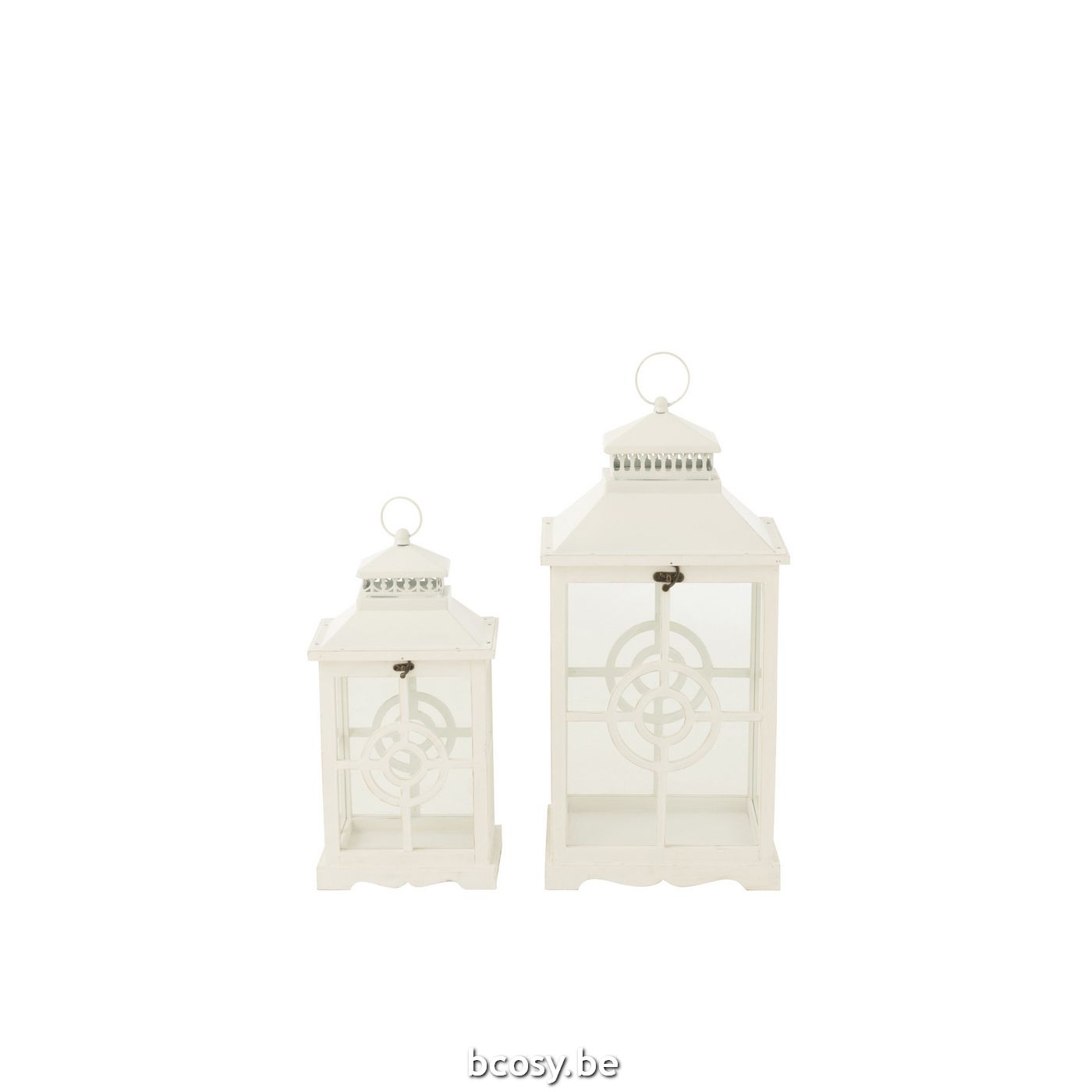 J-Line Set Van Twee Lantaarns Cirkels Hout Wit