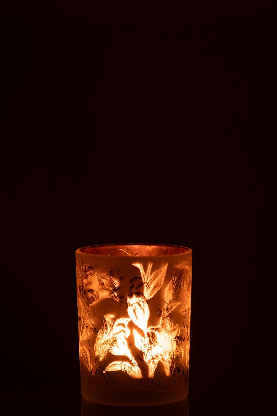 J-Line Windlicht Bloemen Glas Mat Wit-Rood-Goud Medium