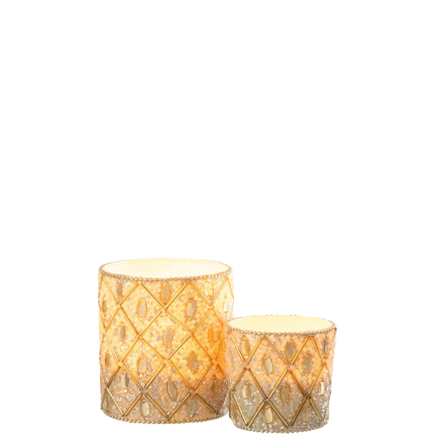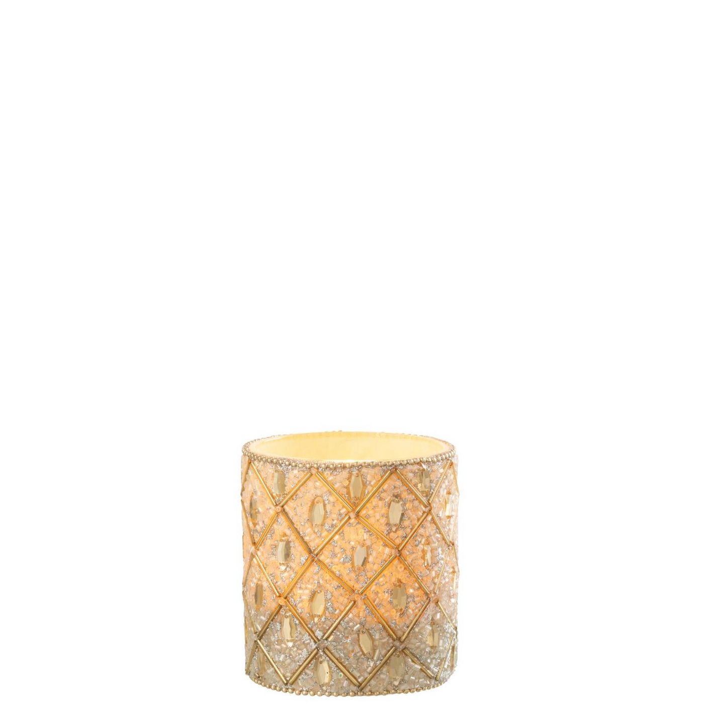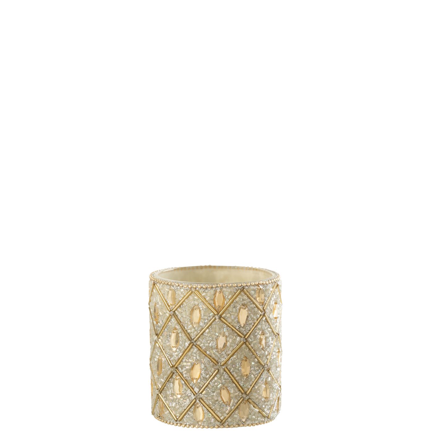Jline Theelichthouder Glas Kralen Wit Goudkleurig Large