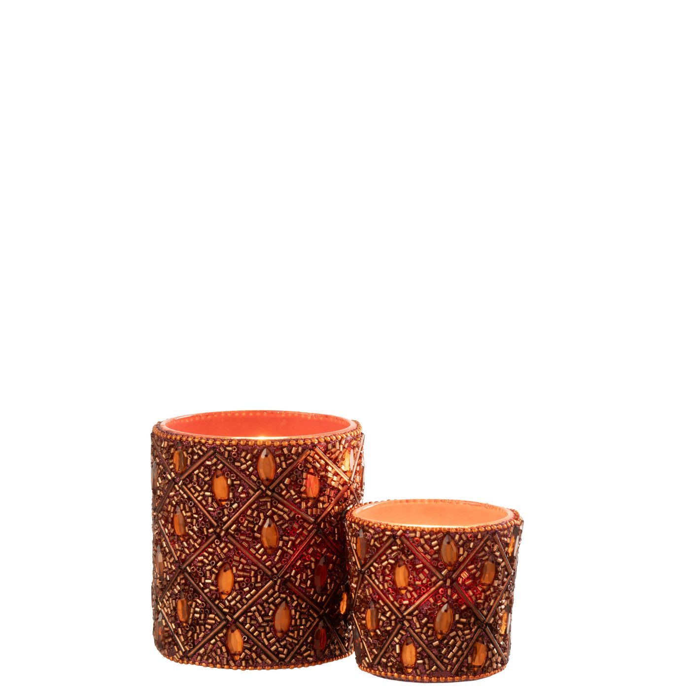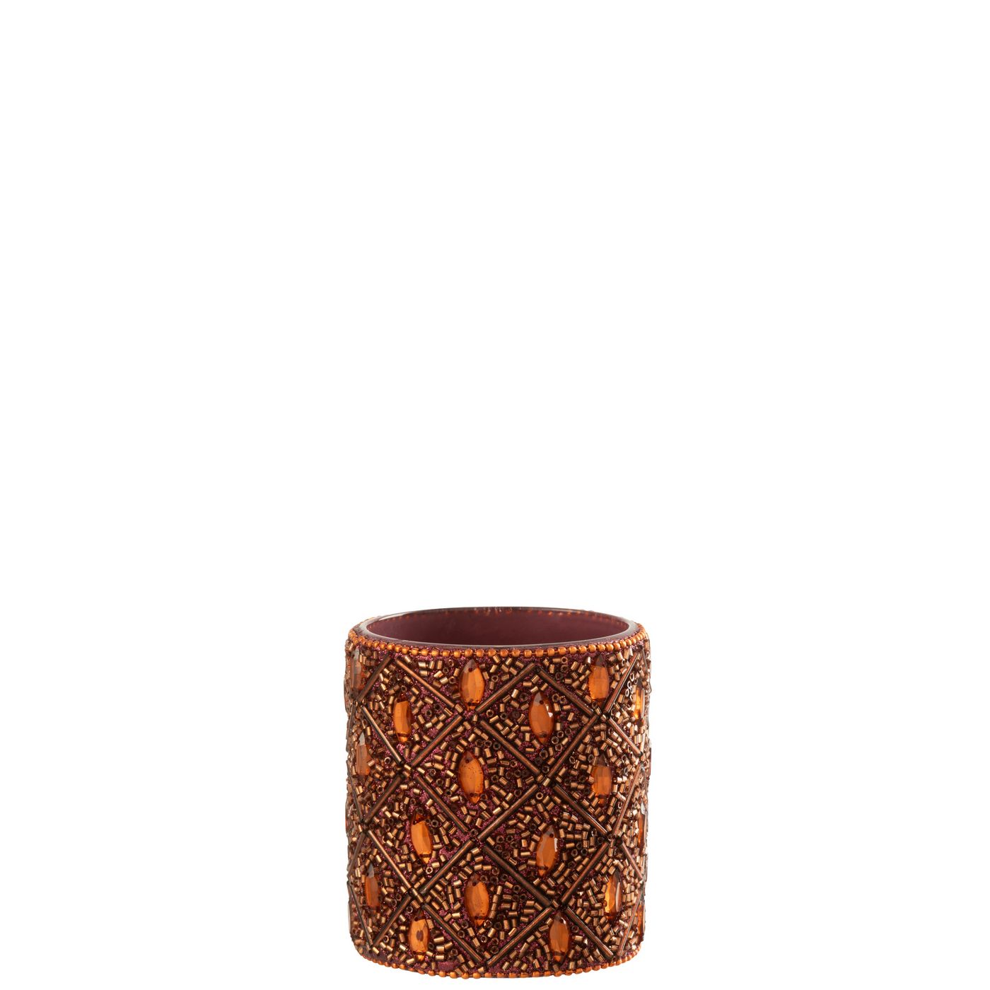 Jline Theelichthouder Glas Kralen Donkerbruin Roestbruin Large