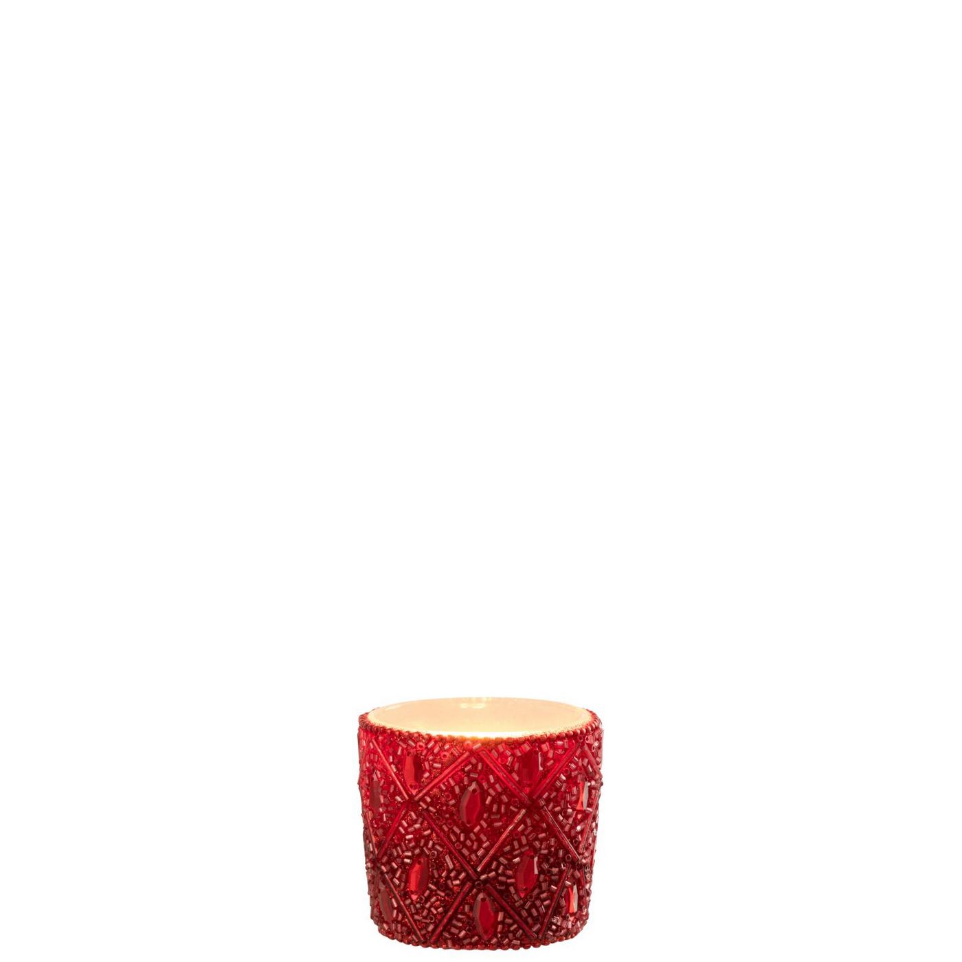 J-Line Theelichthouder Glas-Kralen Kerstrood Small L6xB6xH6 cm