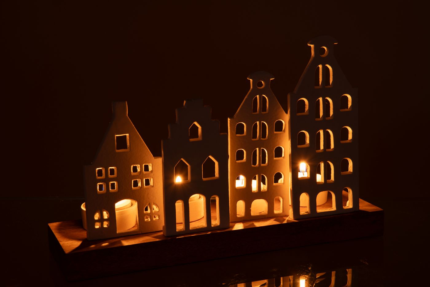 J-Line Theelichthouder Base Aluminium Wit L30xB9xH20 cm