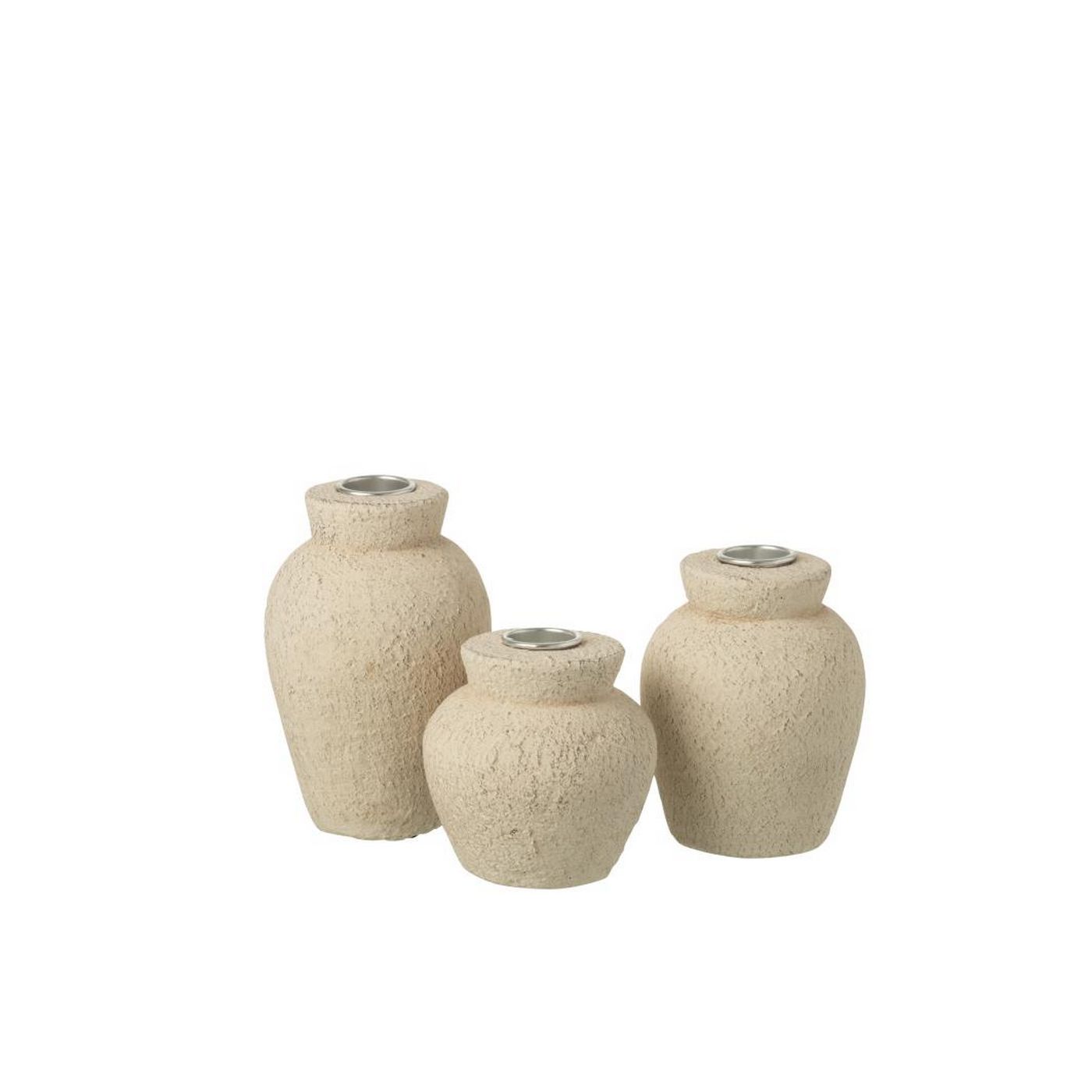 Jline Set Van 3 Kaarshouder Cement Lichtbeige