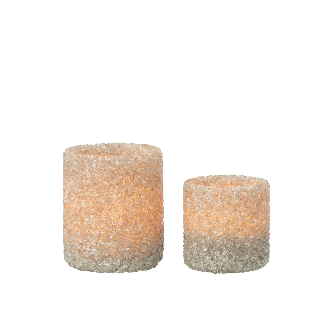 J-Line Set Van 2 Theelichthouder Steen Glas Greige L8xB8xH9 cm