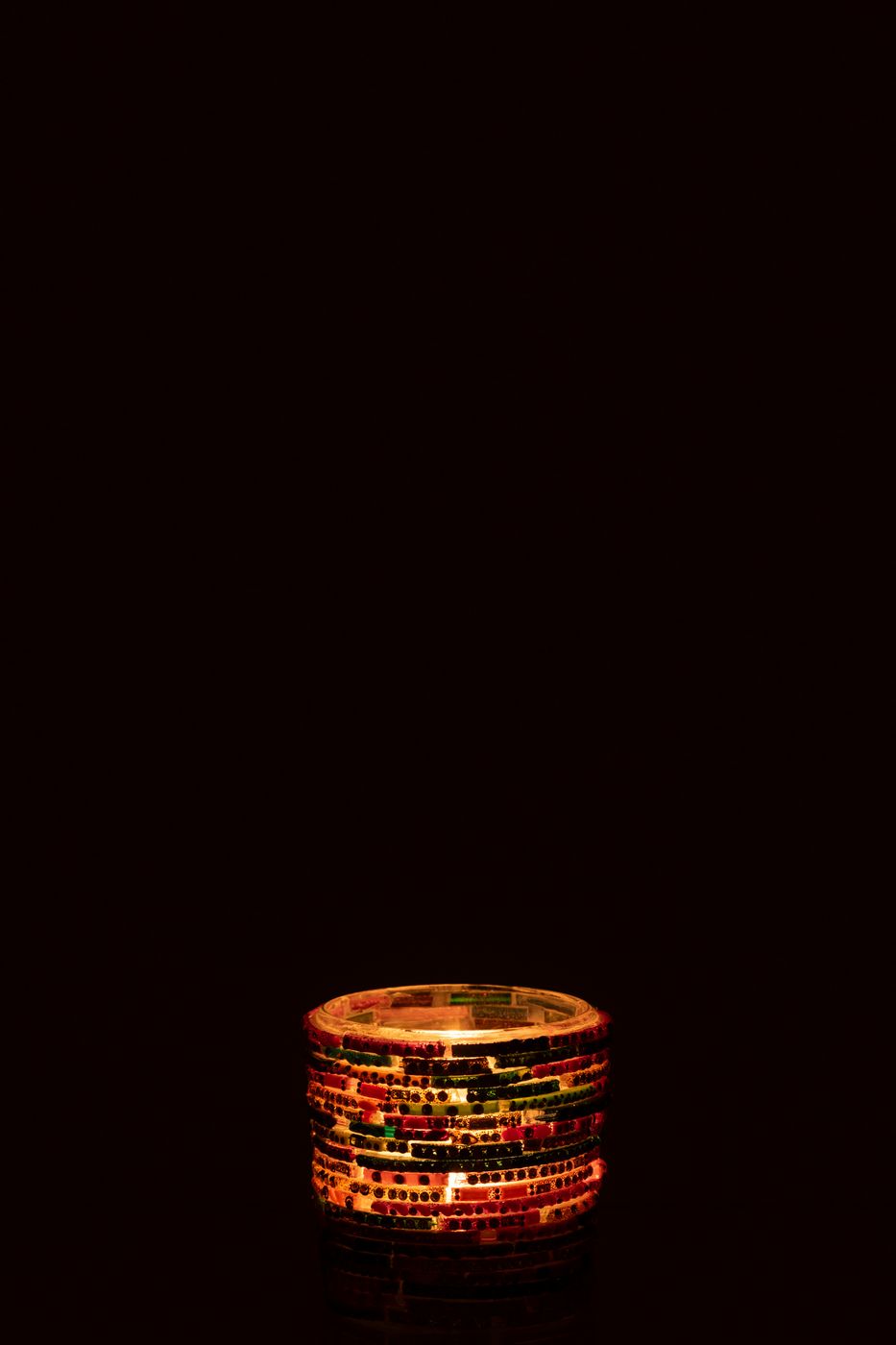 J Line Tealight Holder Beads Glass Pink/Gold Colored Small