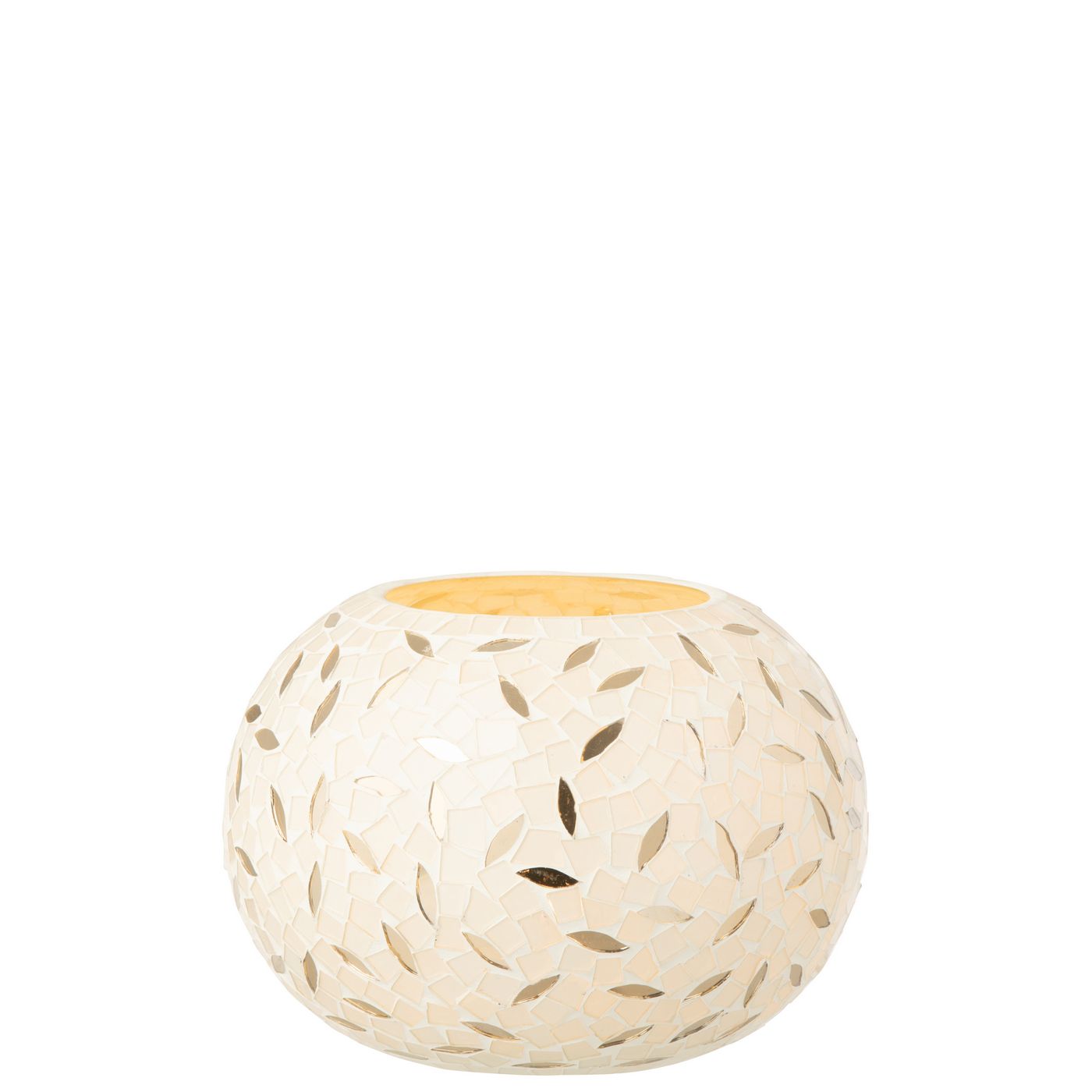 J Line Kerzenständer Ball Mosaik Glas Gebrochenes Weiß/Silberfarben Small