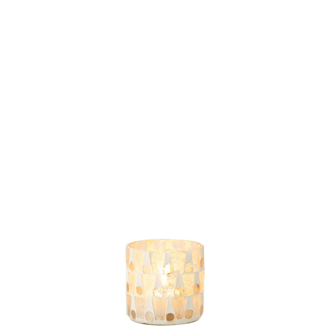 Jline Theelichthouder Cilinder Mozaïek Glas Gebroken Wit Goudkleurig Small