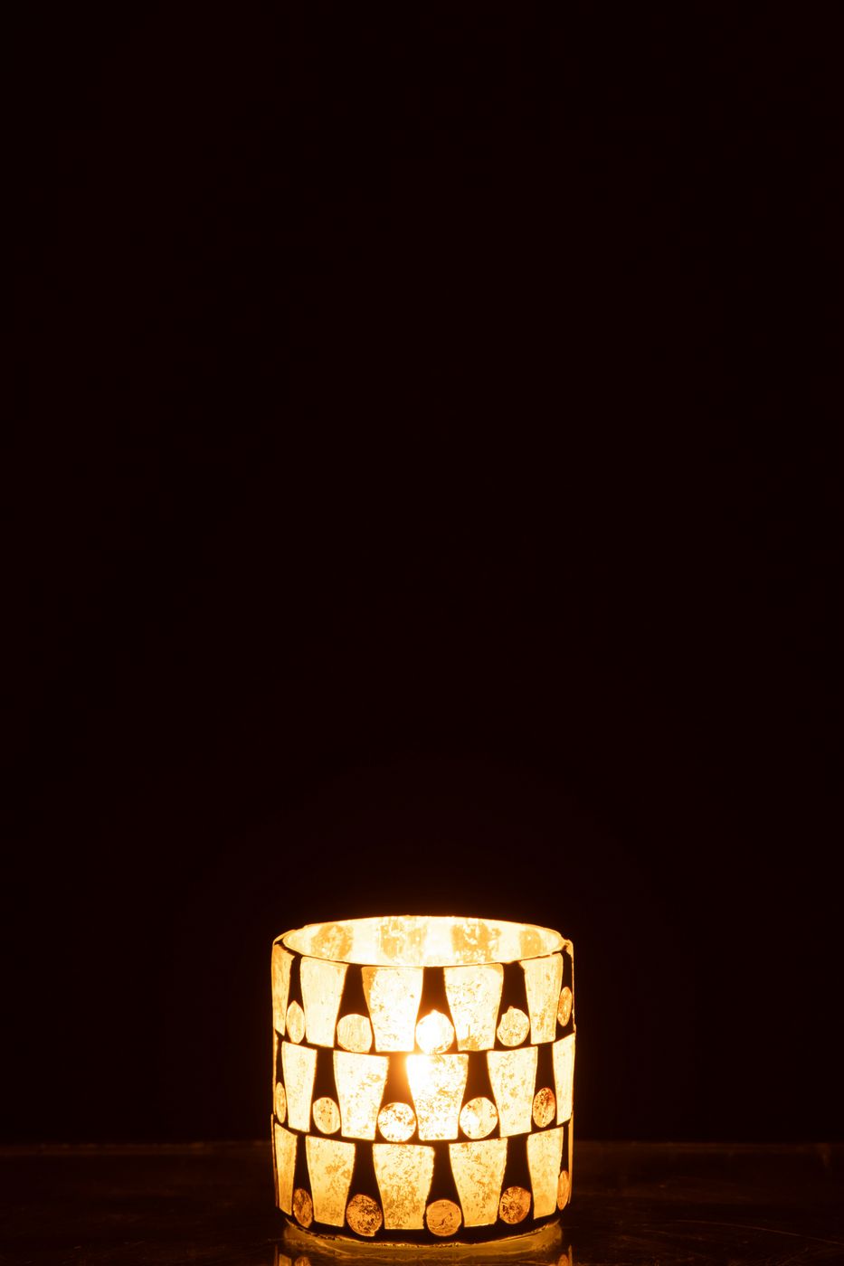 J-Line by Jolipa Photophore Cylindre Mosaïque Verre Blanc Cassé/Doré Small