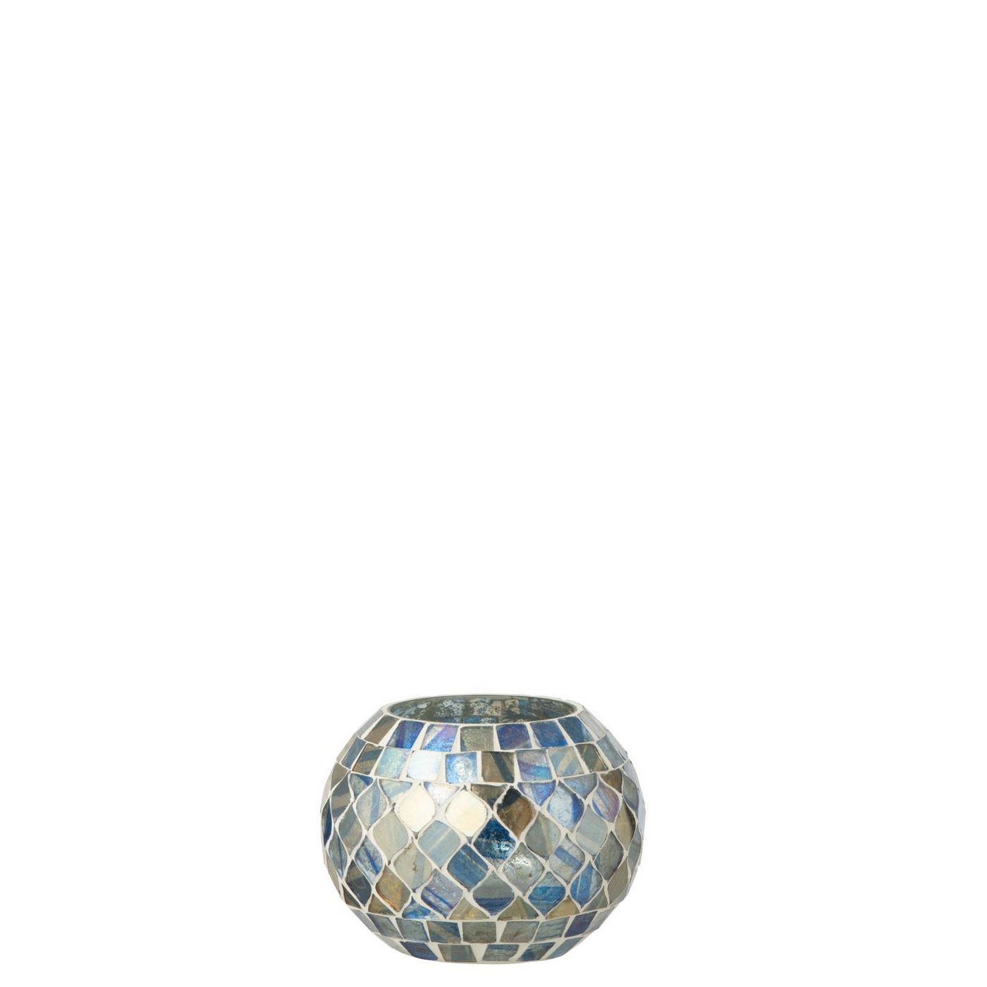 J-Line by Jolipa Photophore Mosaïque Verre Bleu Gris