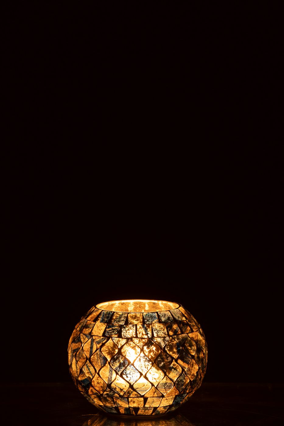 Jline Theelichthouder Mozaïek Glas Grijsblauw
