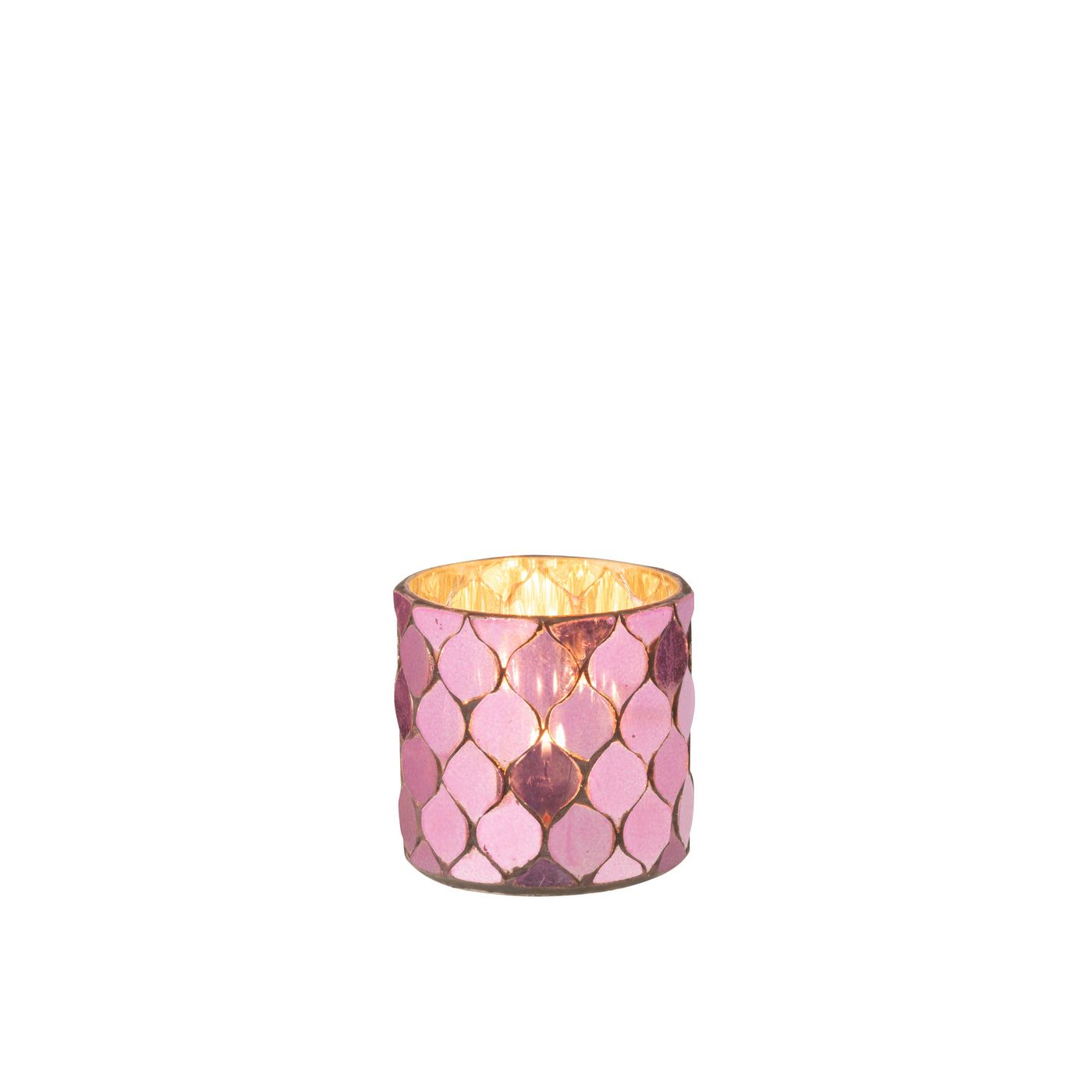 Jline Theelichthouder Cilinder Mozaïek Glas Fuchsia