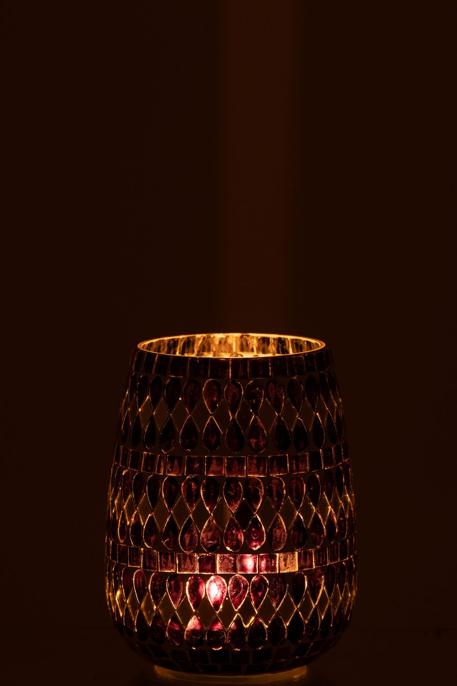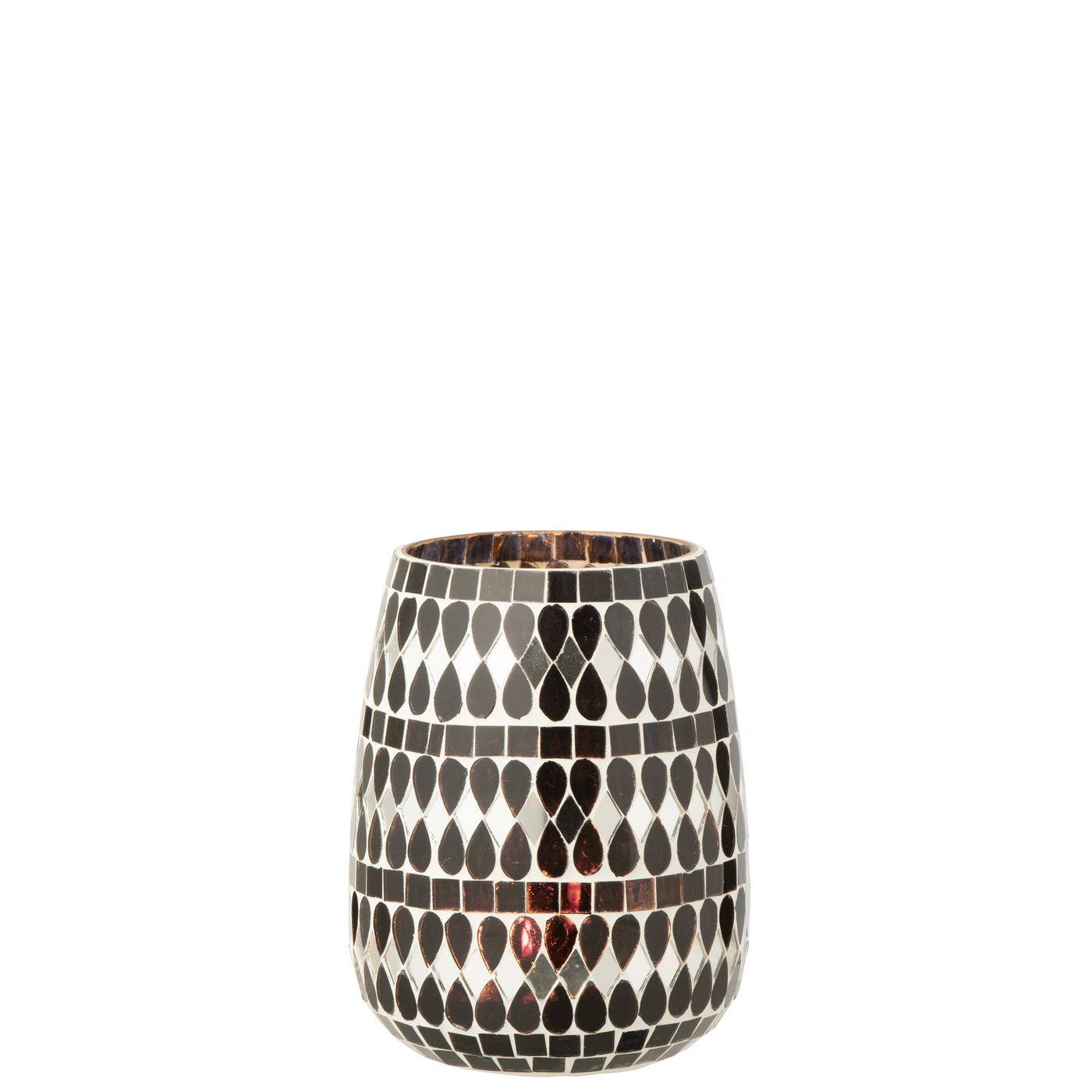 J-Line by Jolipa Photophore Mosaïque Verre Noir/Argenté Medium