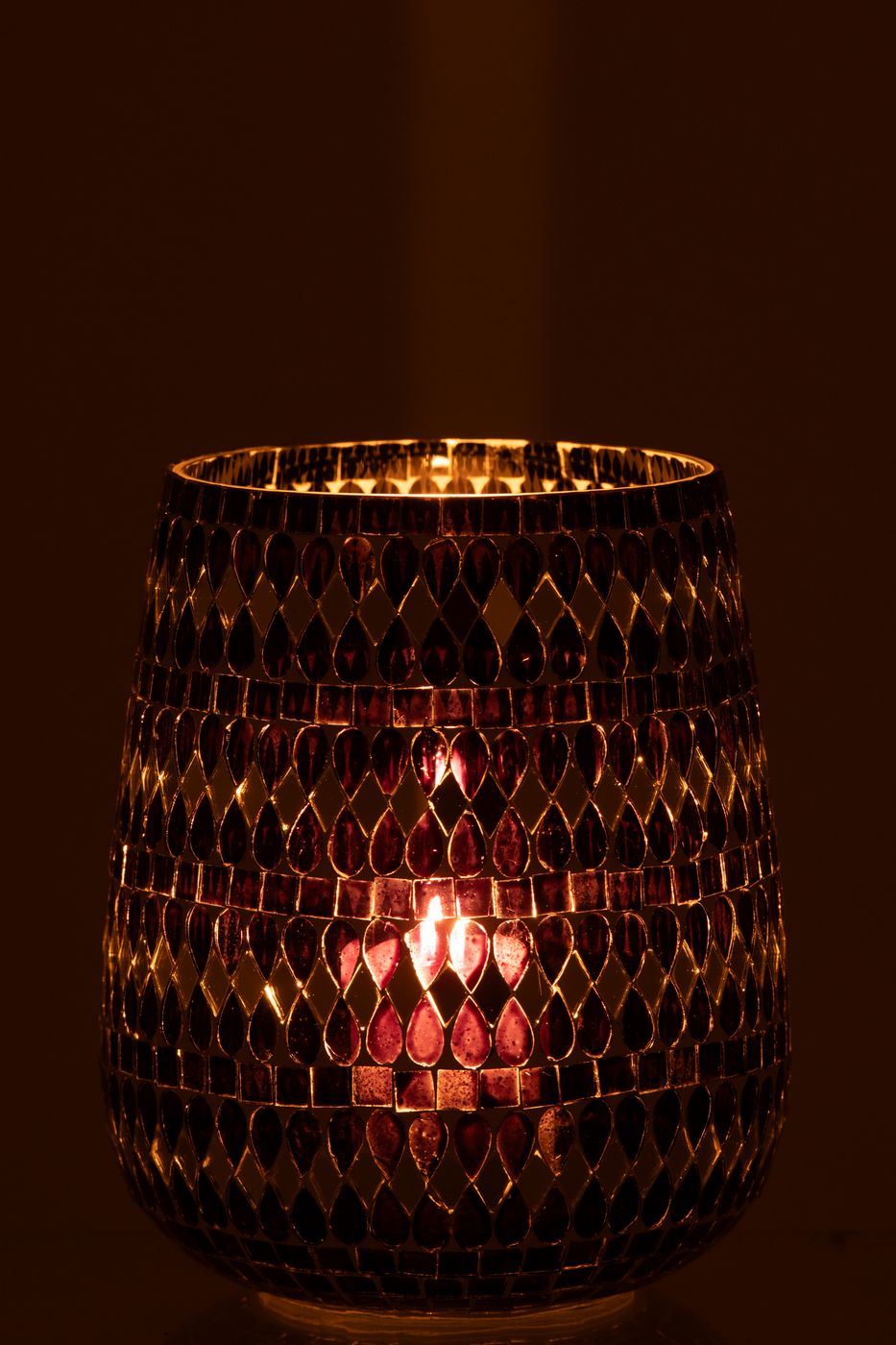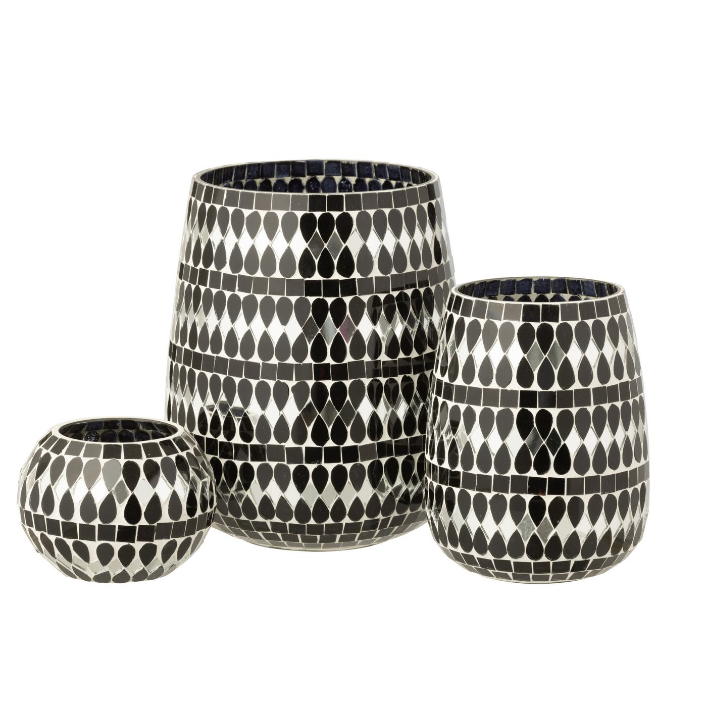 J-Line by Jolipa Photophore Mosaïque Verre Noir/Argenté Large
