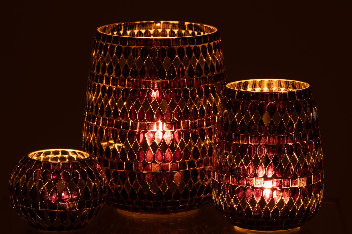 Jline Theelichthouder Mozaïek Glas Zwart Zilverkleurig Large
