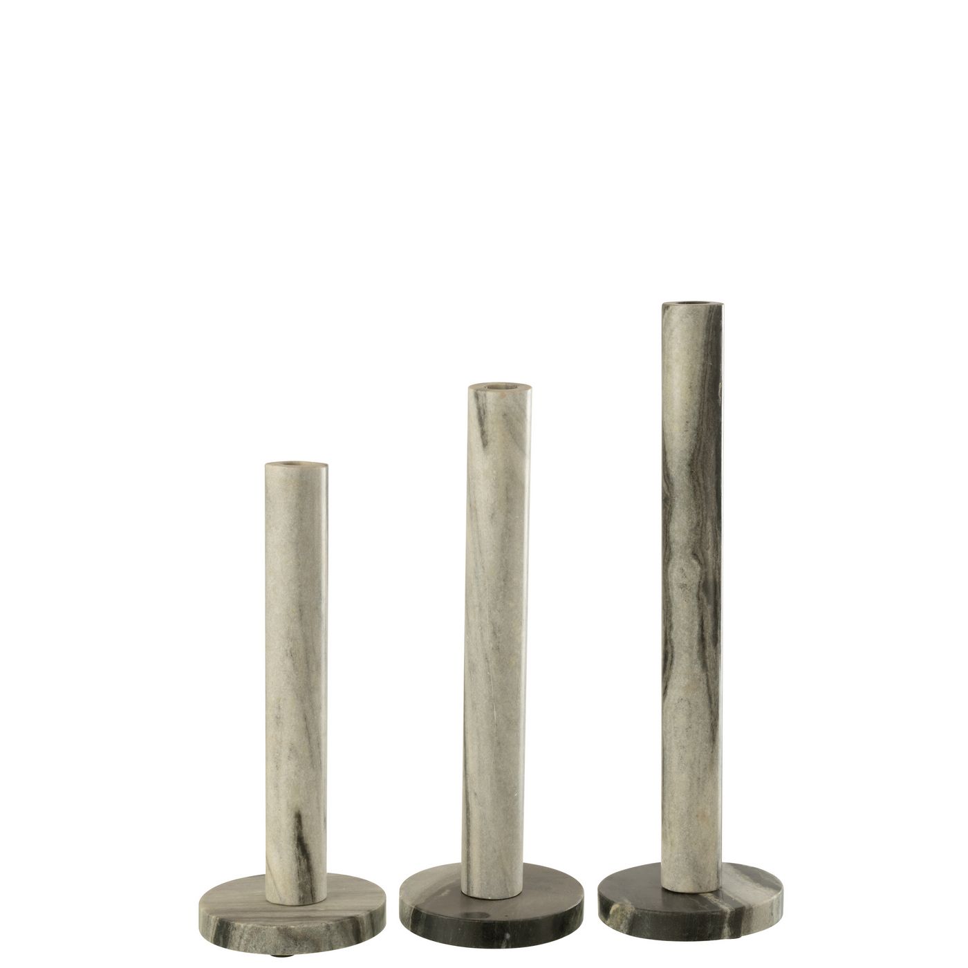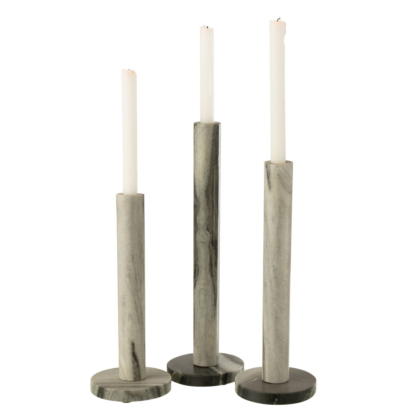 Jline Set Van 3 Kaarshouder Marmer Zwart Lichtgrijs
