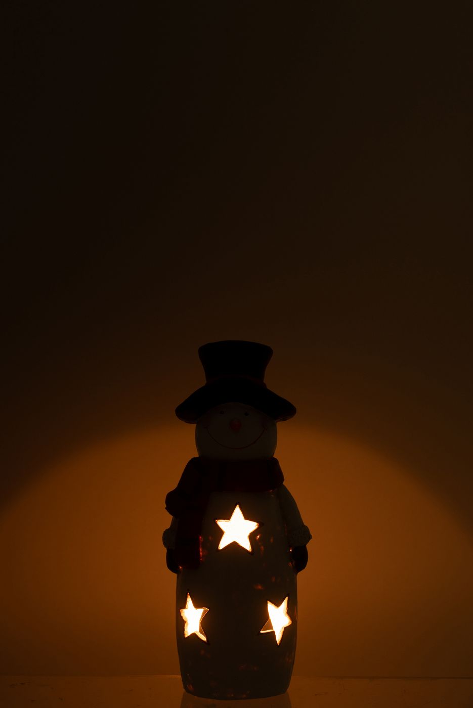 Jline Theelichthouder Sneeuwman Sjaal Hoed Magnesium Meerkleurig Small