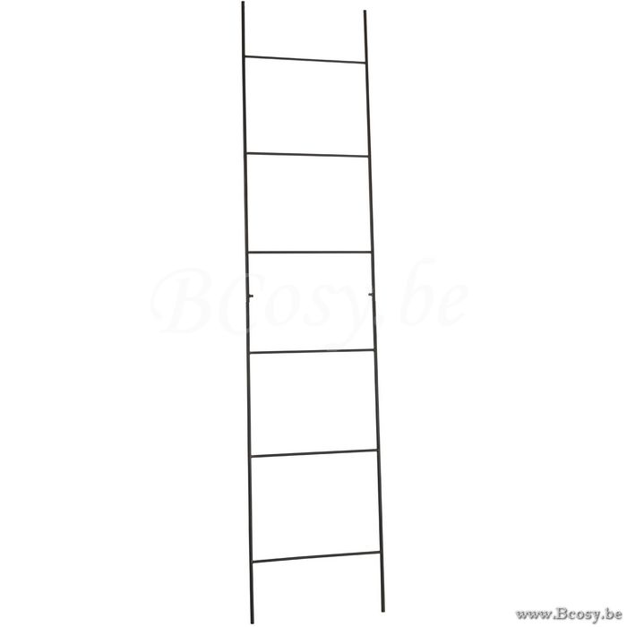 J-Line Zwartstalen Sierladder om tekstiel aan op te hangen Textiel Ladder Metaal Zwart 200 L50xH220 cm