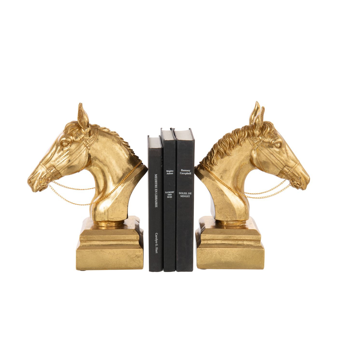 Jline Set Van 2 Boekensteun Op Voet Paardenhoofd Polyresin Goudkleurig