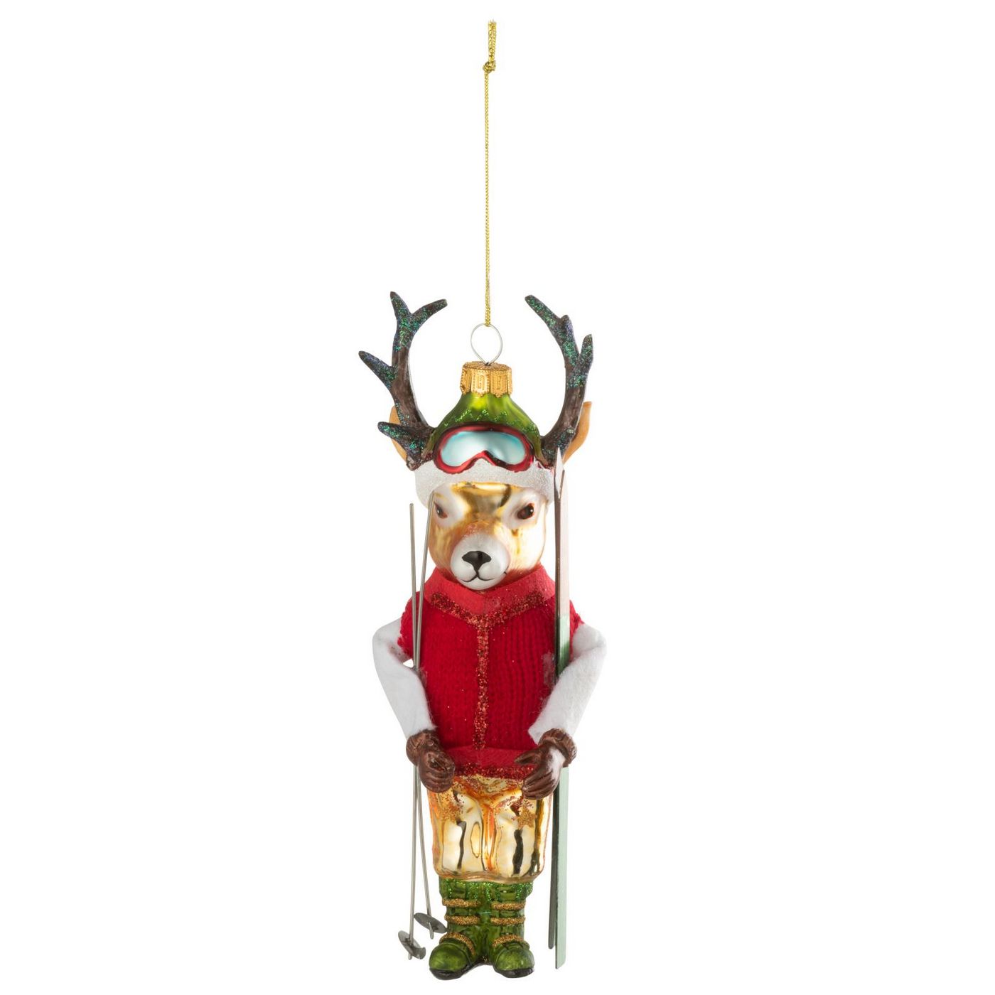 J Line Aufhänger Rentier Mit Ski Glas Braun/Weihnachtsrot