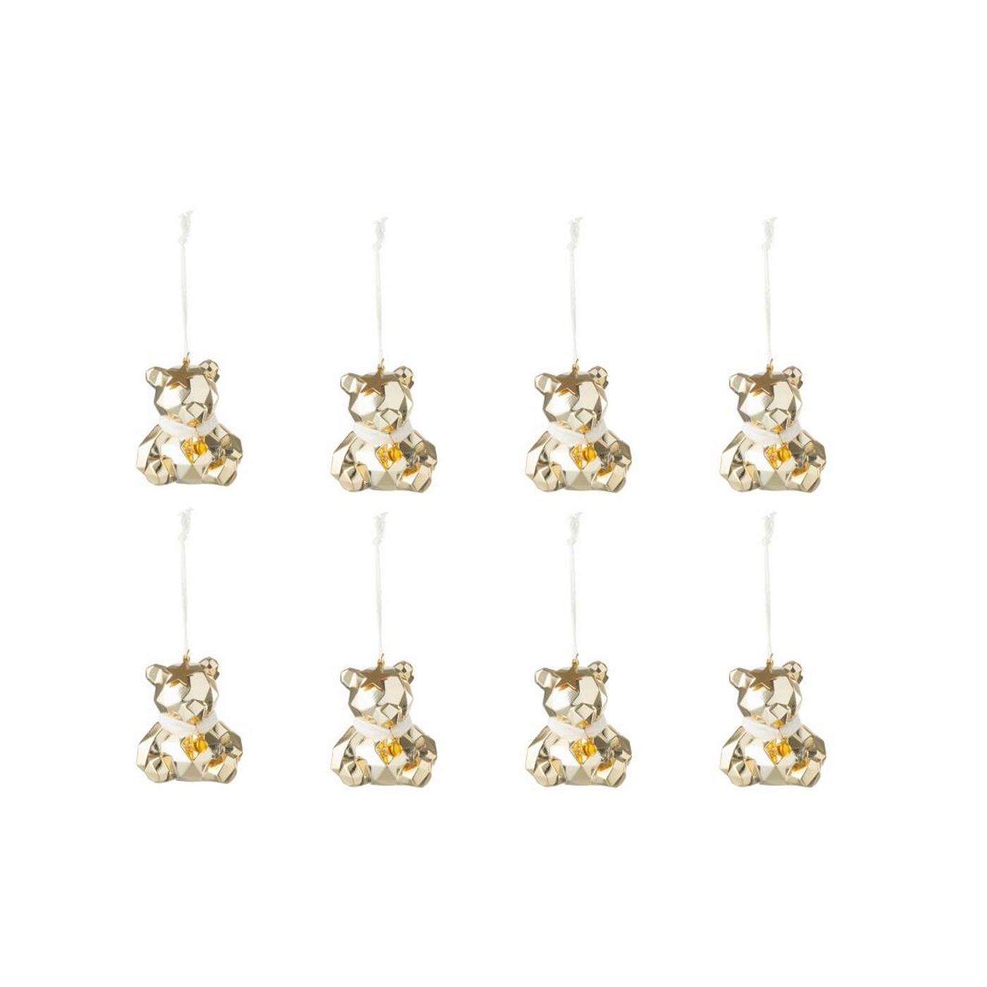 J-Line by Jolipa Boite De 8 Suspension Ours Plastique Doré/Blanc