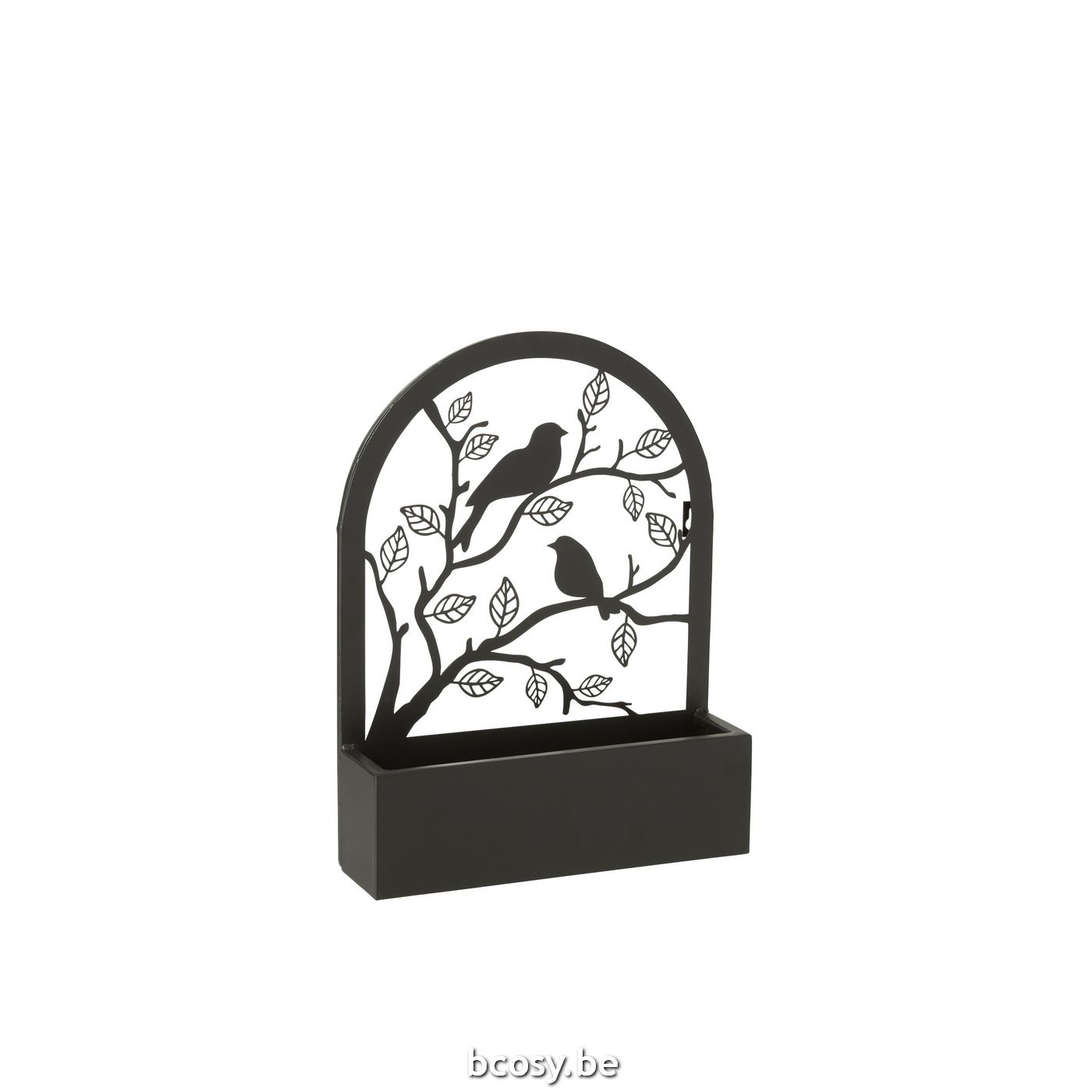 Jline Wanddeco Bloempot Vogels Metaal Zwart