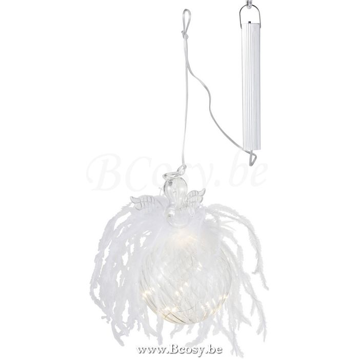 Jline Kerstballen Engel Led Pluim Glas Klaar Large