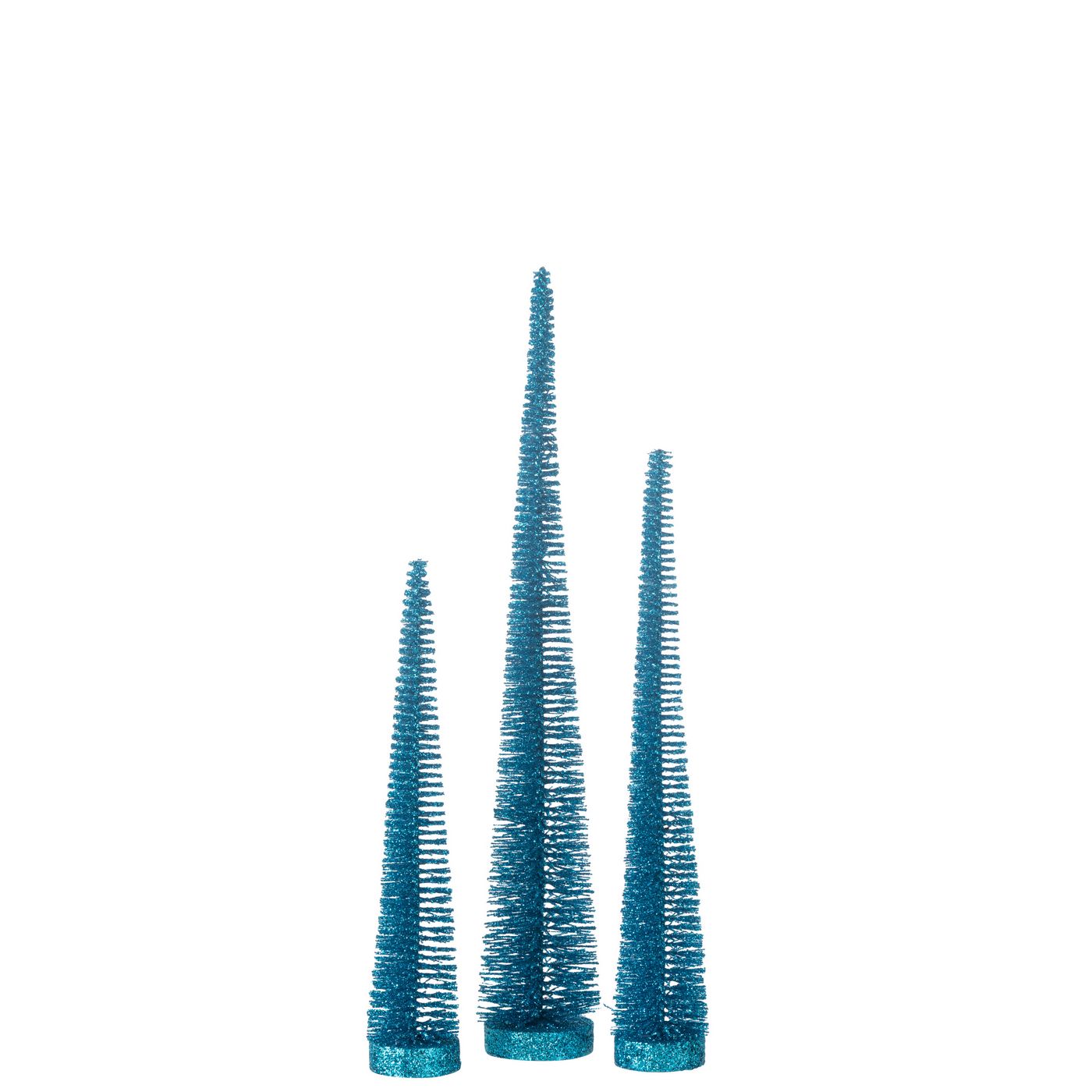Jline Doos Met 3 Kerstboom Decoratief Glitter Plastiek Blauw