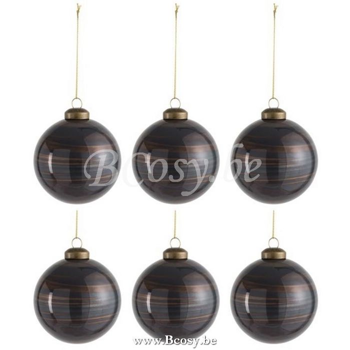 J-Line Doos Van 6 Kerstballen Glas Antiek Bruin Small 8H