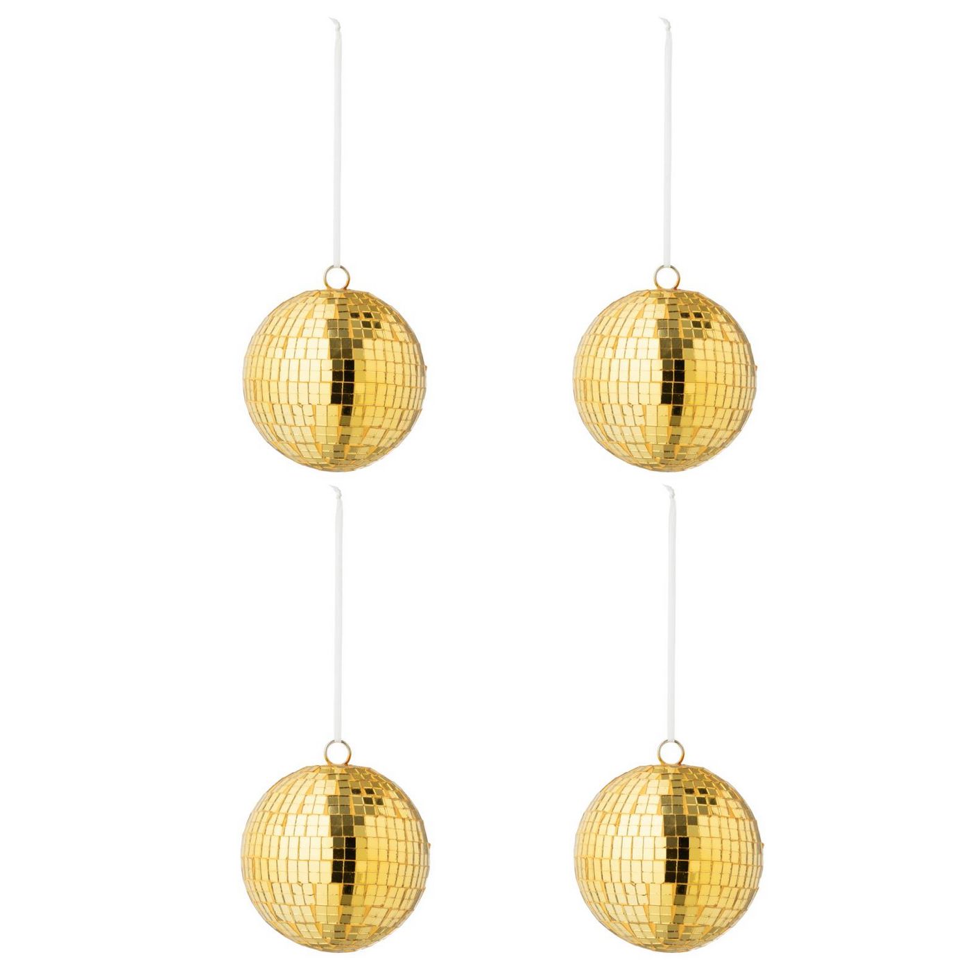 J-Line Doos Van 4 Kerstbal Spiegel Glas Geel Large L11xB11xH11 cm