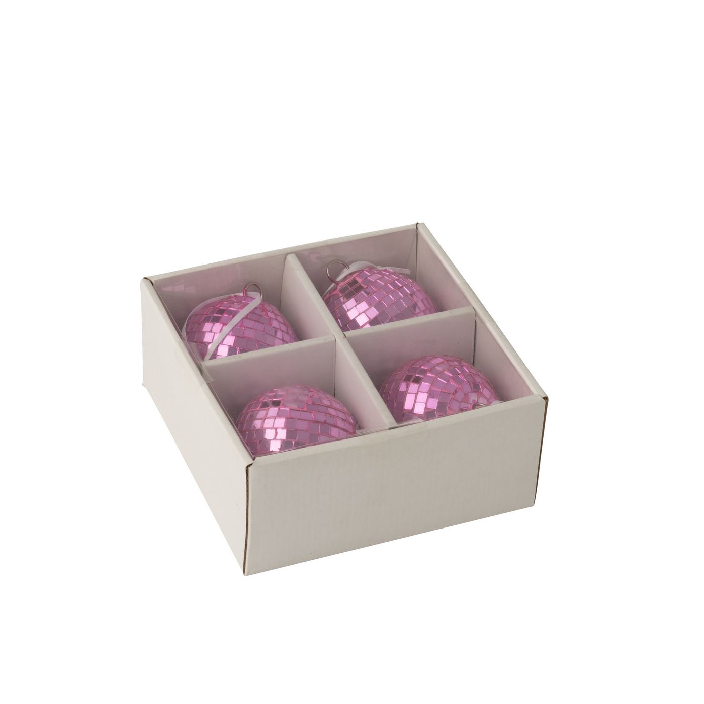J-Line Doos Van 4 Kerstbal Spiegel Glas Roze Small L7xB7xH7 cm