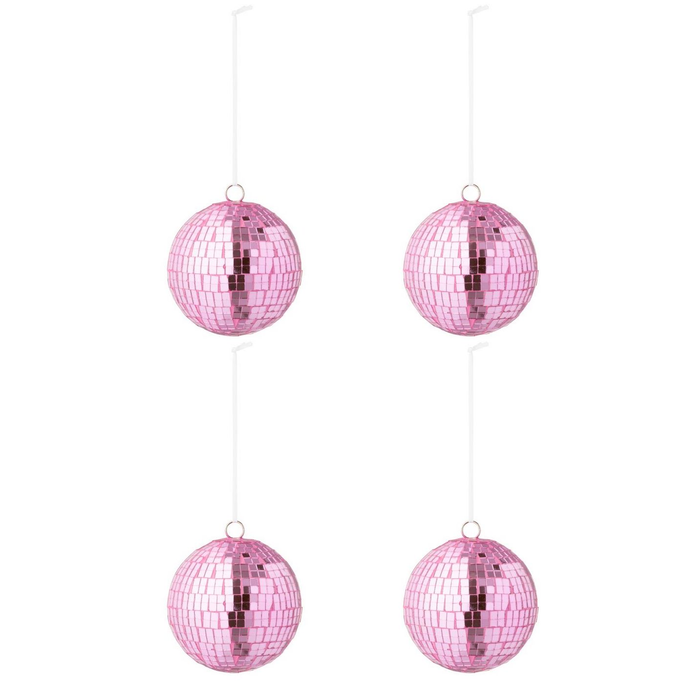 J-Line Doos Van 4 Kerstbal Spiegel Glas Roze Large L11xB11xH11 cm