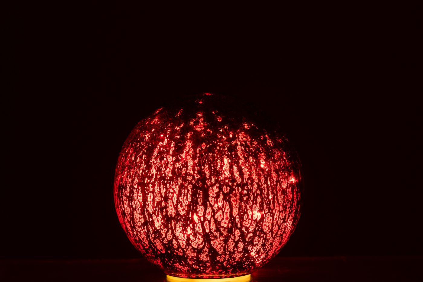 J-Line by Jolipa Boule Led Craquelé Verre Rouge Noël Small