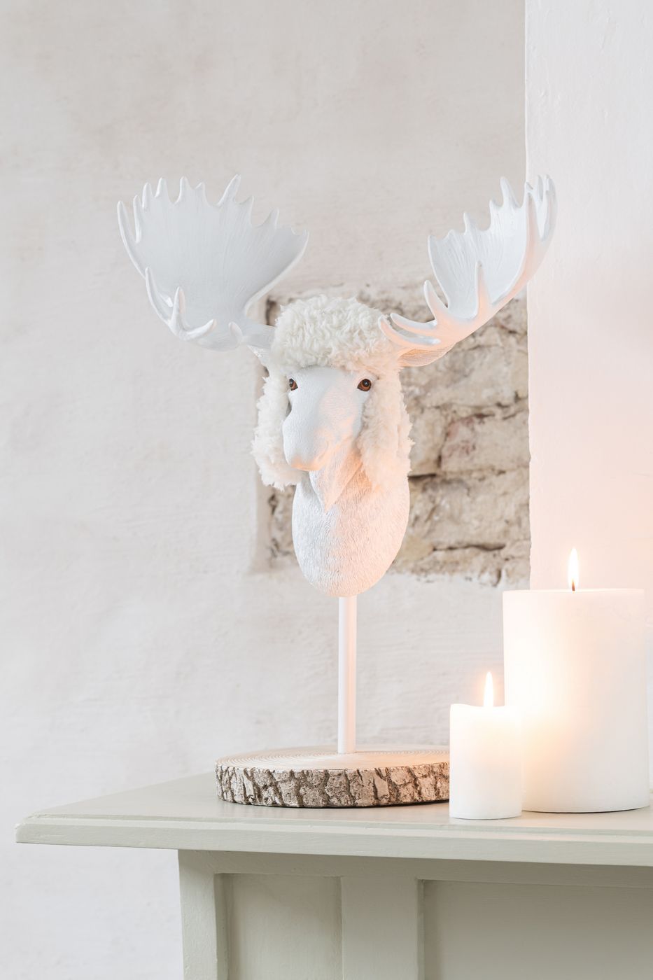 J-Line Eland Op Voet Bont Kalk Ecru-Wit L32xB24xH49 cm