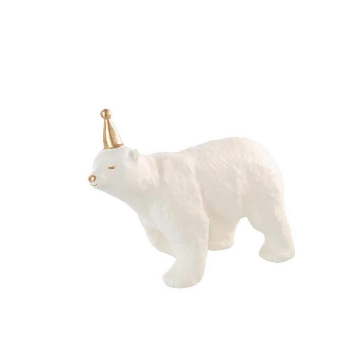 J-Line Ijsbeer Feesthoed-Wandelend Kalk Wit-Goudkleurig L25xB14xH23 cm